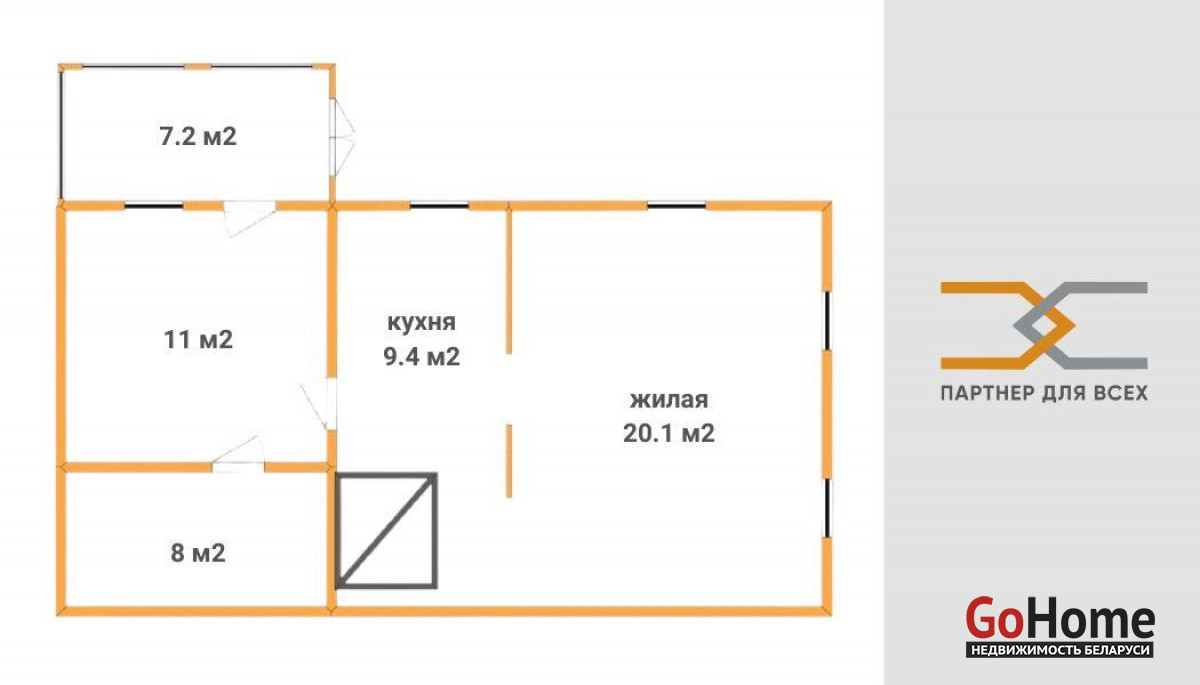 Продается дом в деревне Огородники Слуцкого района. Общая площадь дома 55,7 м.кв., жилая - 20,1 м.кв., кухня 9,4 м.кв.