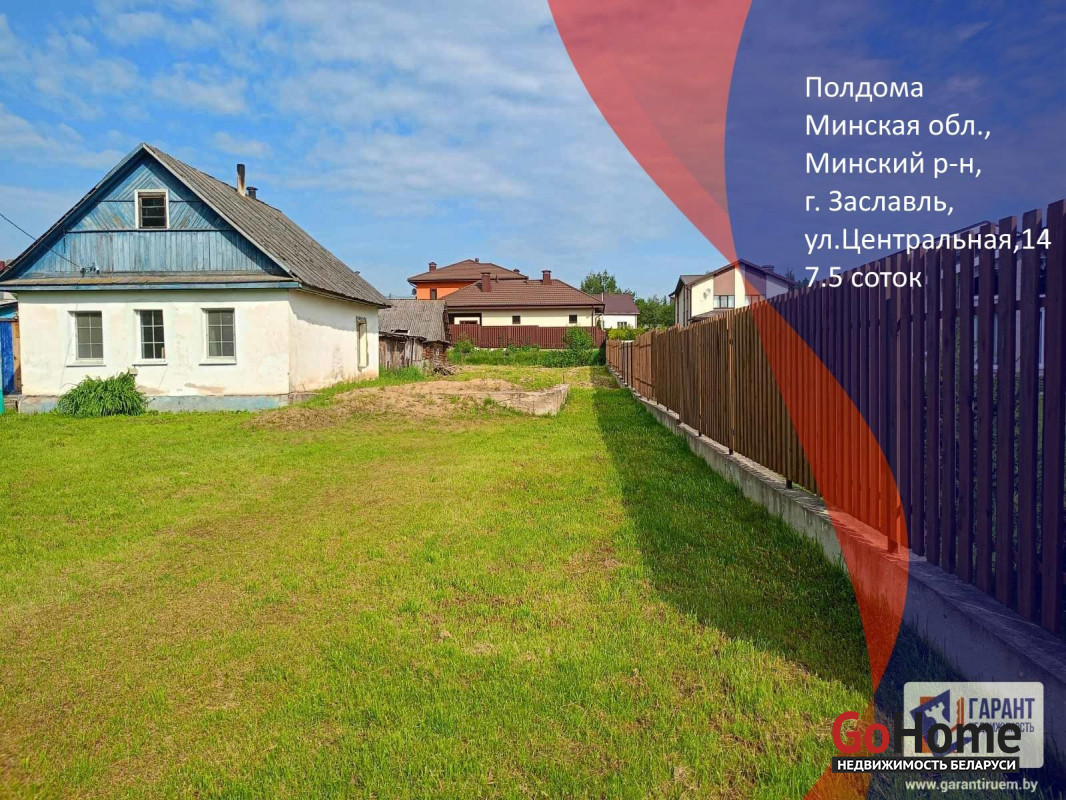 В продаже полдома, участок 7.5 соток в г. Заславль, в престижном районе.Удалённость от Минска 15 км по скоростной Молодечненской трассе.Дом расположен в отличном и тихом месте в частном секторе города, который пользуется большим спросом у любителей загородной жизни.Здесь есть все необходимые коммуникации для строительства и проживания.Водоснабжение центральное.Газ рядом.К дому присоединяется капитальный фундамент 2021г. Есть готовый проект, по которому можно достроить дом.С одной стороны участка по всей длине установлен современный забор с капитальным фундаментом.Новая асфальтированная проезжая часть.Эта улица расположена не в центре, а ближе к окраине, поэтому проезжих автомобилей гораздо меньше.В пару минутах ходьбы – лес. Недалеко живописное место с прудом. Эта локация точно Вам не сможет не понравиться.Инфраструктура-отличное транспортное сообщение, если нет автомобиля.