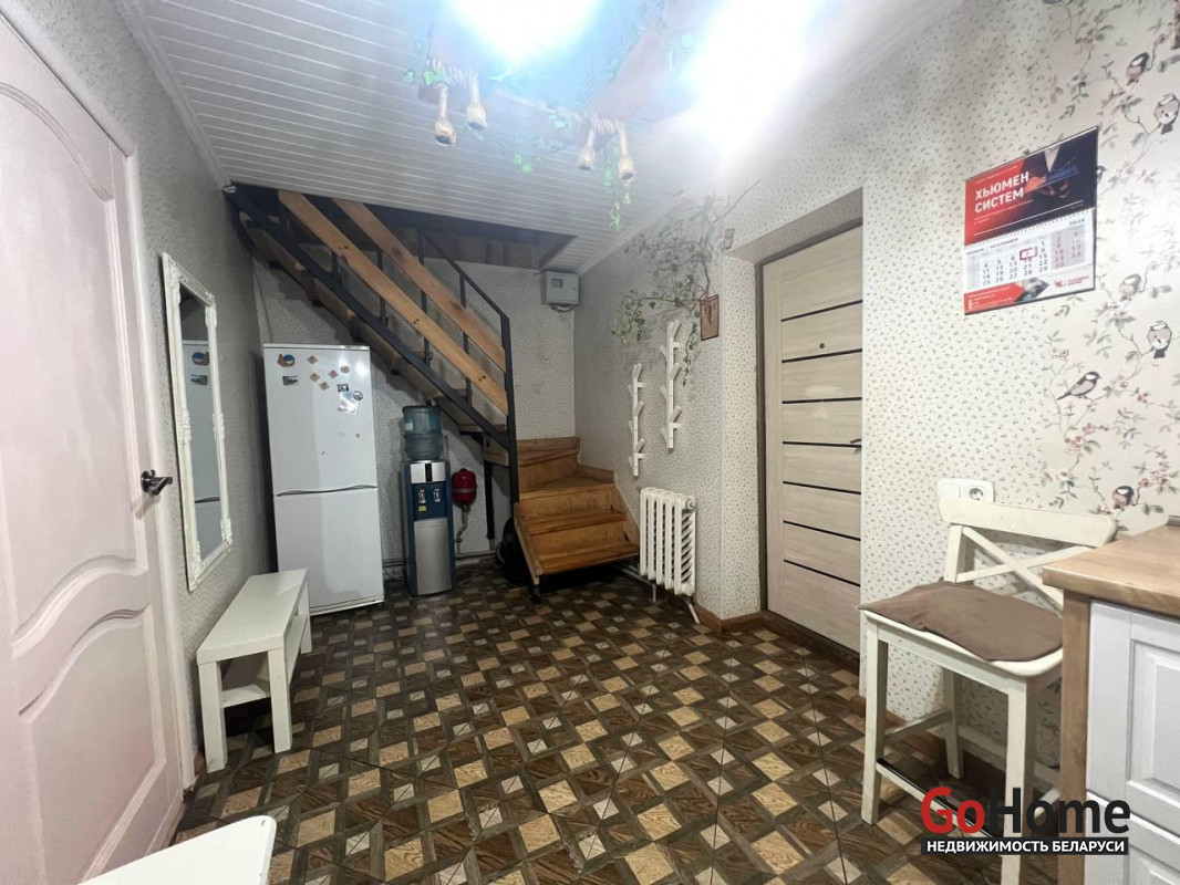 На первом этаже расположены застекленная терраса с кладовкой, санузел, кухня, жилая комната. Есть подогрев пола. Установлен бойлер (горячая вода на кухне и в санузле).