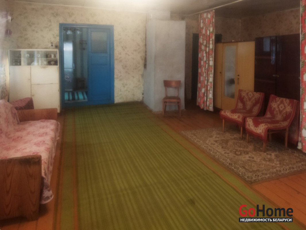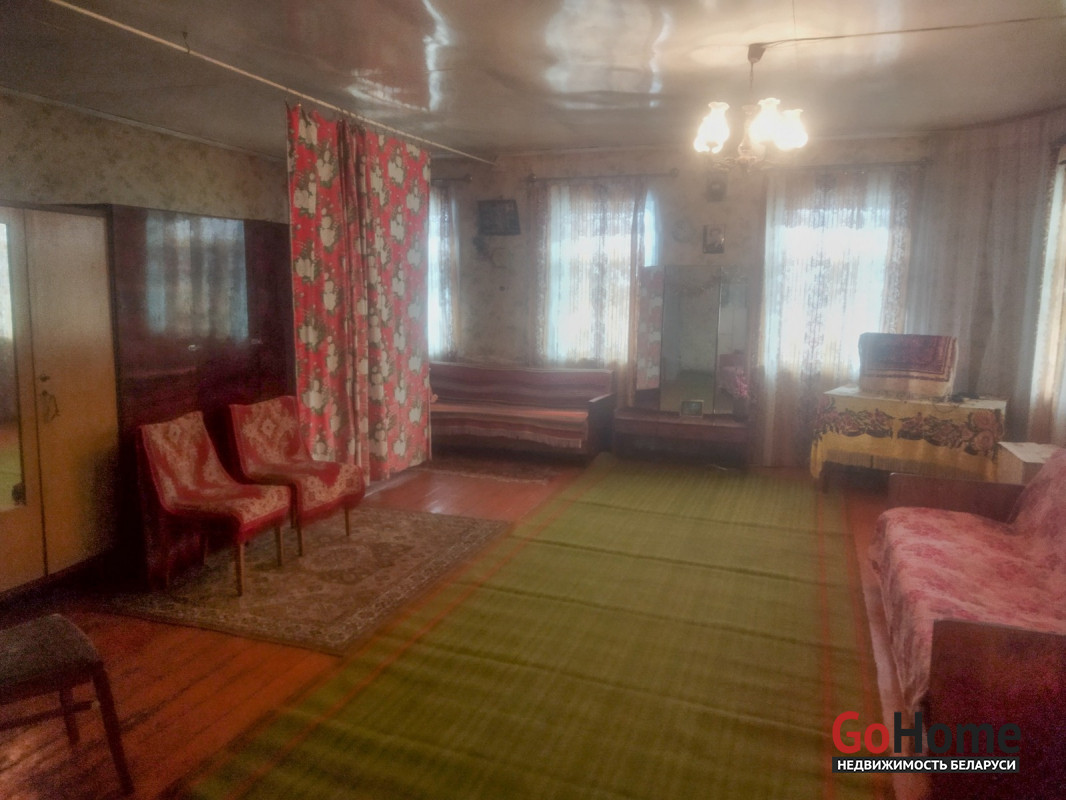 Одноэтажный деревянный крепкий сруб (7х11м), крыша шиферная, полы деревянные. Общая площадь составляет 66.3м2, большая жилая комната 45.0м2, кухня 11.7м2, высота потолков 2.72м.