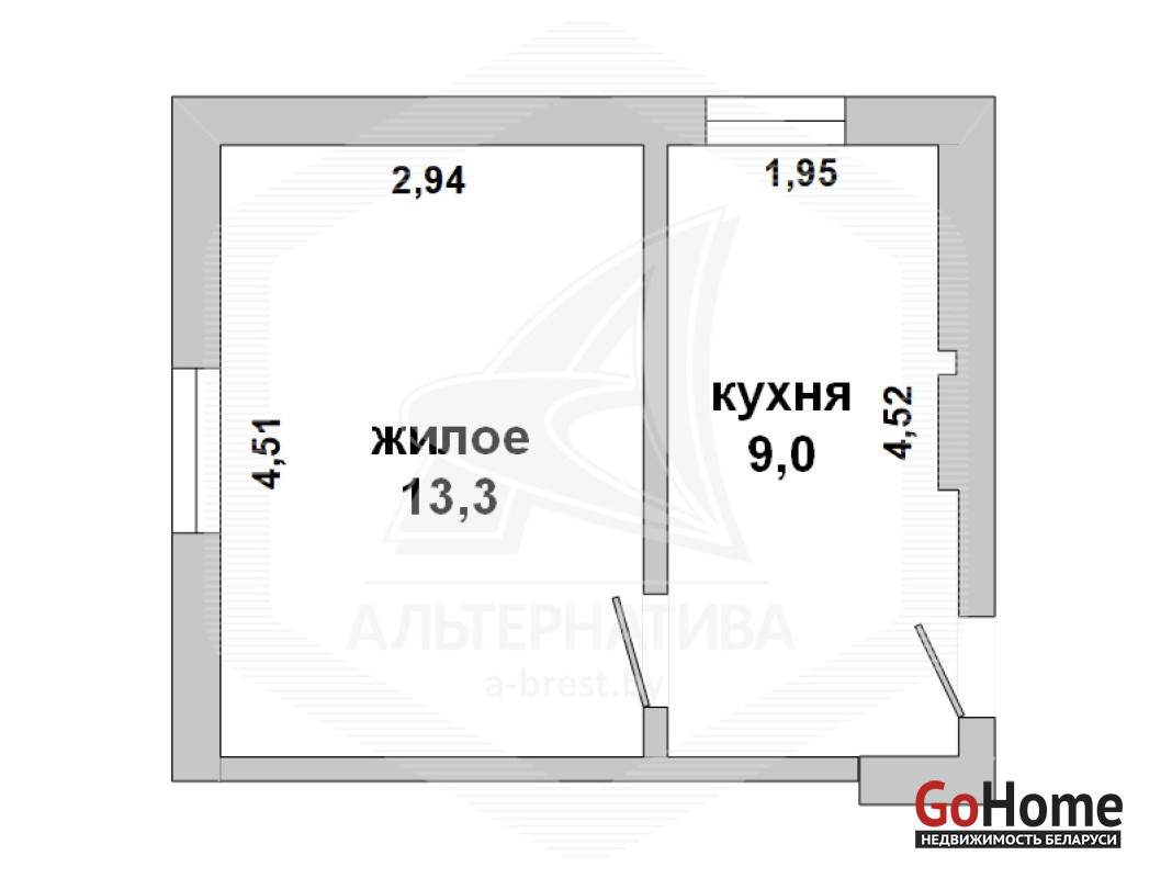 1-комнатная квартира, г. Высокое, ул. Пушкинская, 1937 г.п., 1 / 2 кирпич, 22,3 / 22,3 / 13,3 / 9,0, стеклопакеты, многоуровневые потолки - 3,1 м, полы - доска, стены оклеены обоями, автономный газовый котел. В квартире требуется ремонт. Лот - 251184