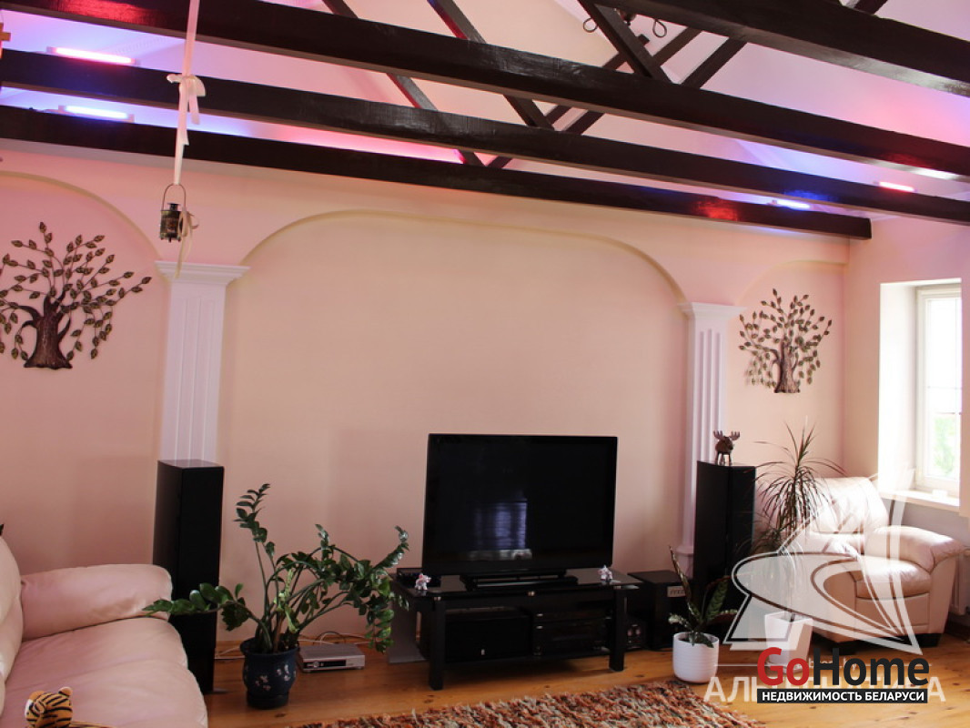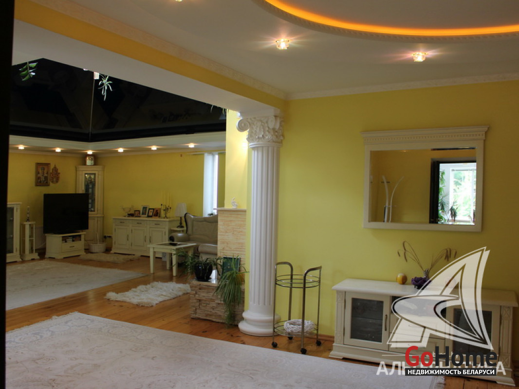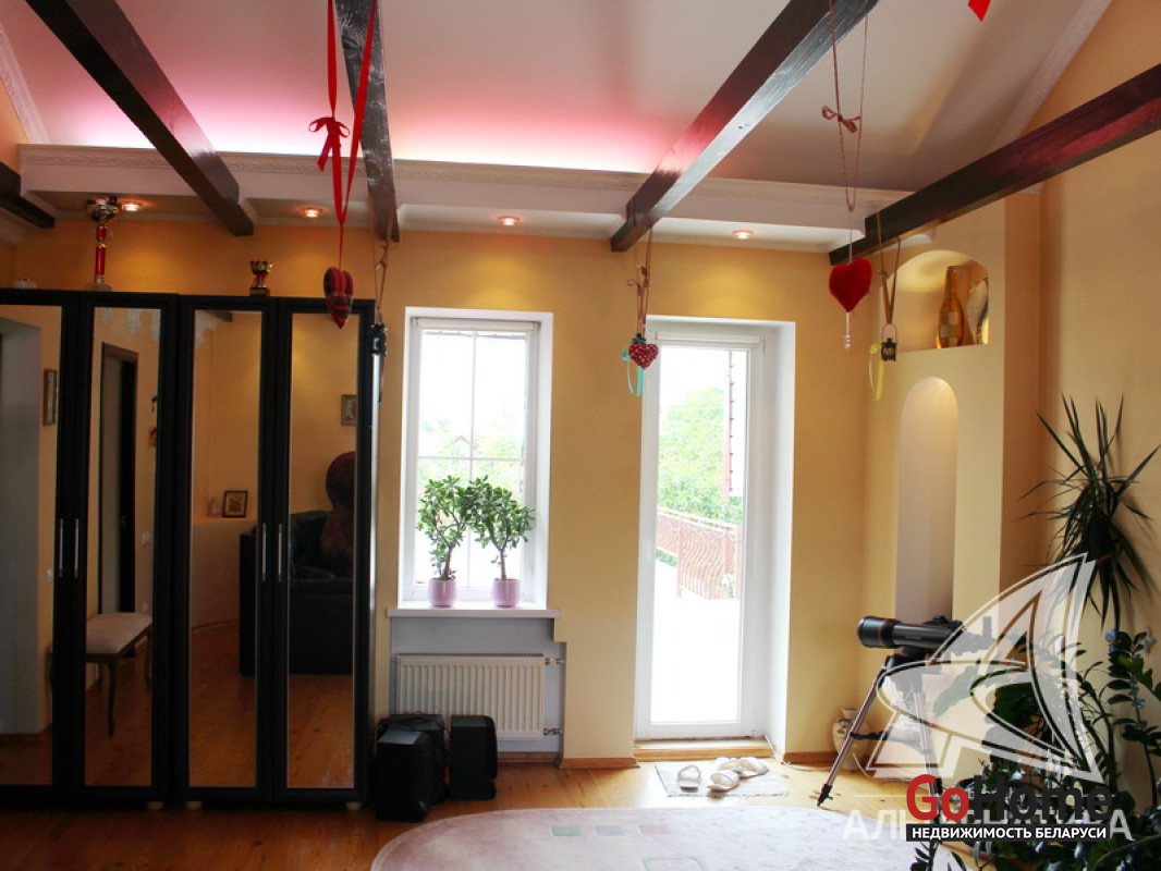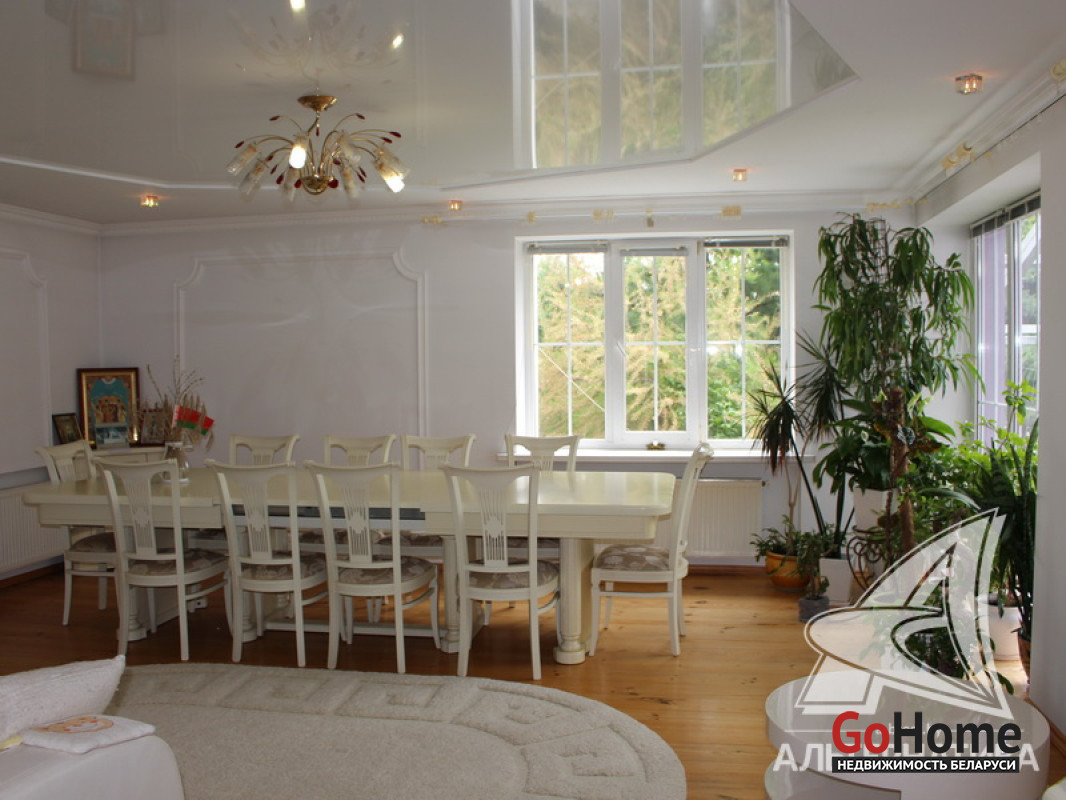 Жилой дом в Брестском р-не. 2004 г.п. 2 этажа. Общ.СНБ - 381,2 кв.м, общ.- 242,5 кв.м, жил.- 151,3 кв.м, кух.- 12,5 + 12,5 кв.м. 4 комнаты, высота потолка - 2,65 - 5,60 м.