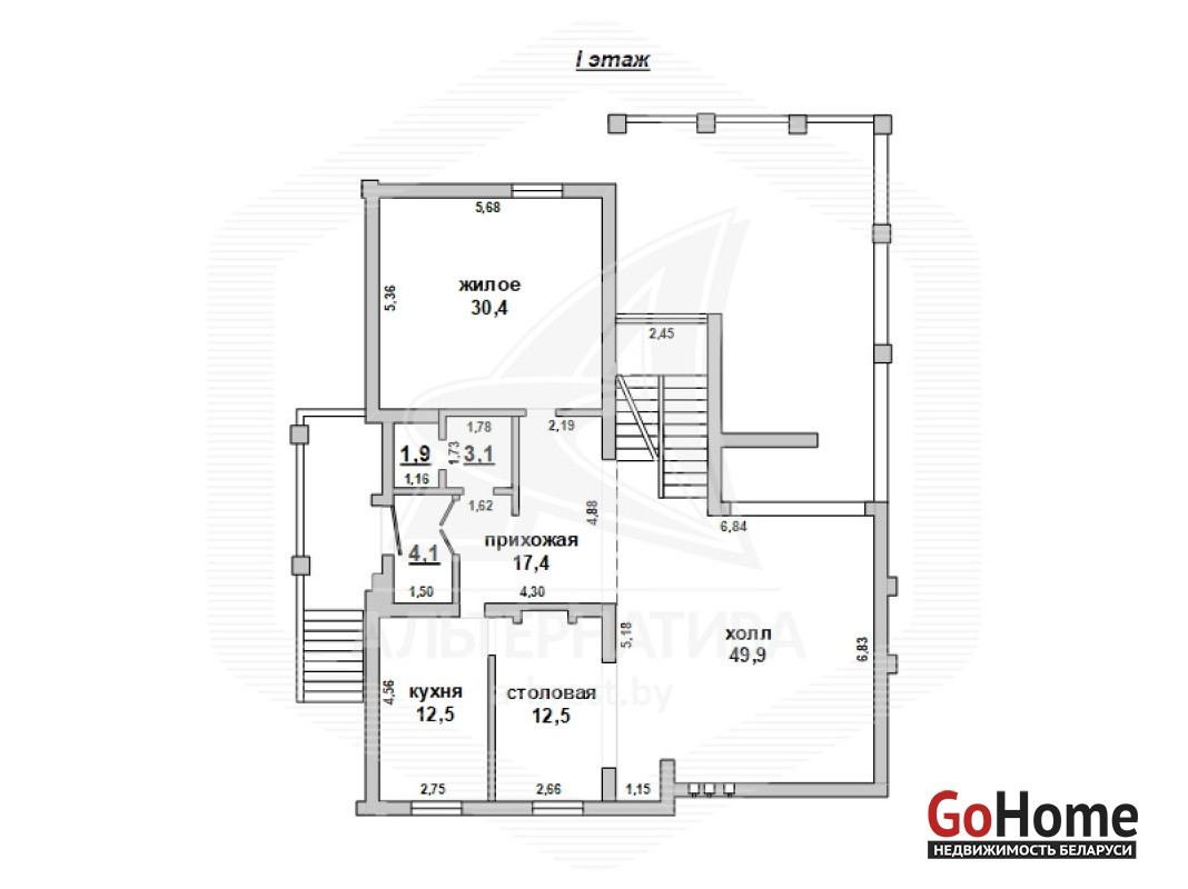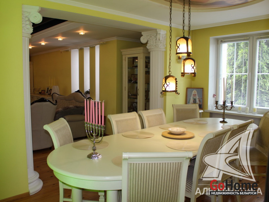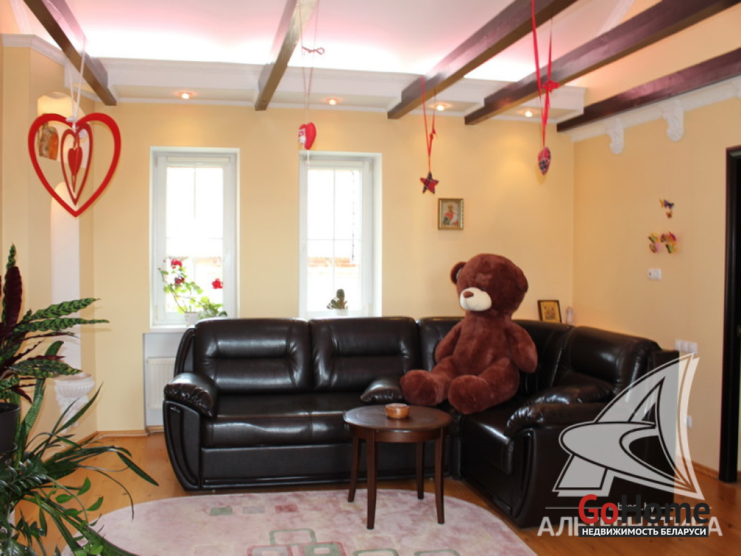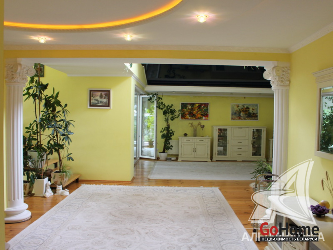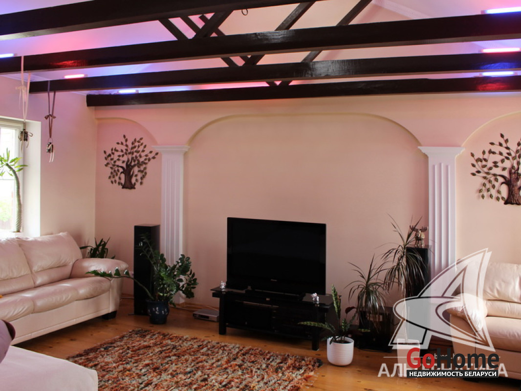 Жилой дом в Брестском р-не. 2004 г.п. 2 этажа. Общ.СНБ - 381,2 кв.м, общ.- 242,5 кв.м, жил.- 151,3 кв.м, кух.- 12,5 + 12,5 кв.м. 4 комнаты, высота потолка - 2,65 - 5,60 м.