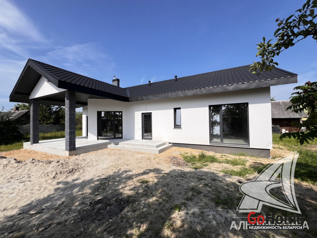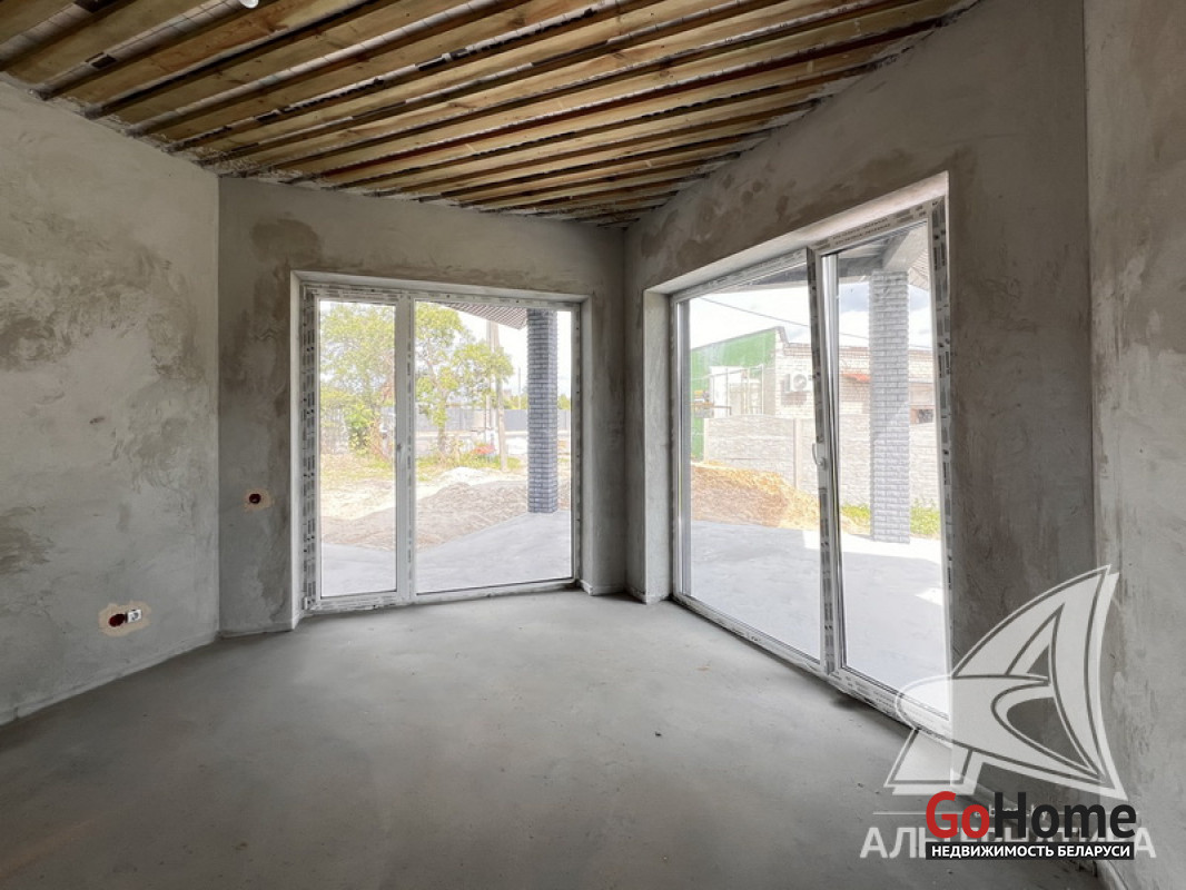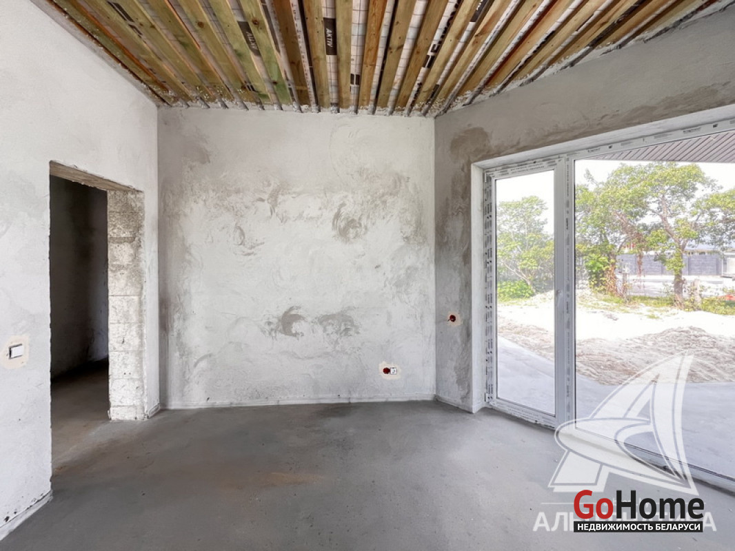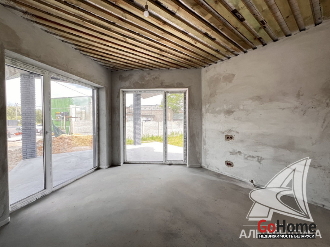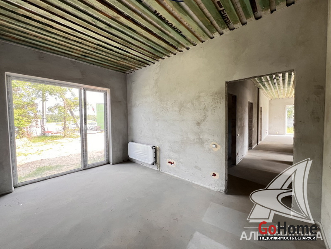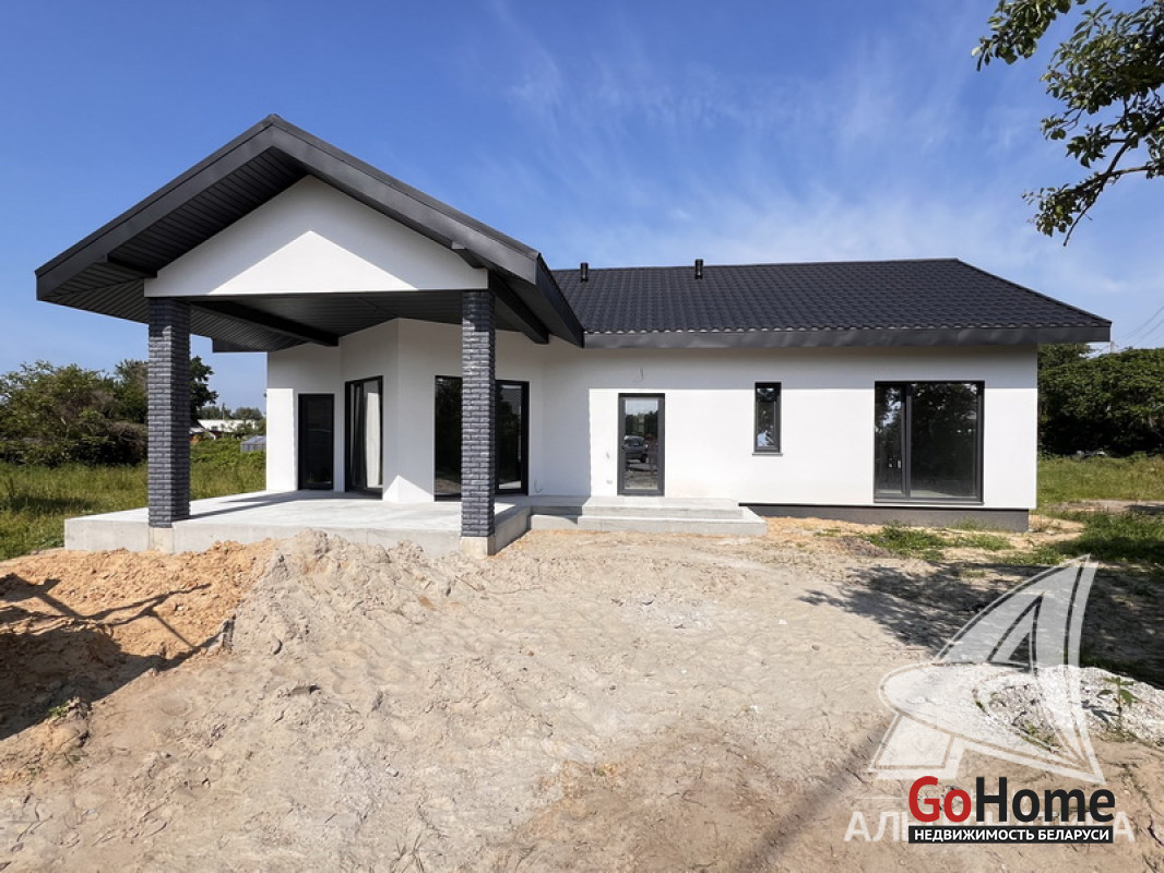 Жилой дом под чистовую отделку в Брестском р-не. 2025 г.п. 1 этаж. Общ.СНБ - 149,05 кв.м, общ.- 115,73 кв.м, жил.- 63,49 кв.м, кух.- 15,44 кв.м. 4 комнаты, высота потолка - 2,90 м.