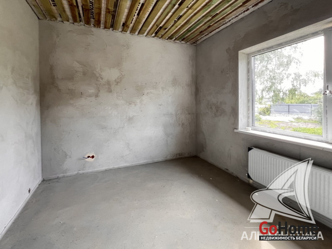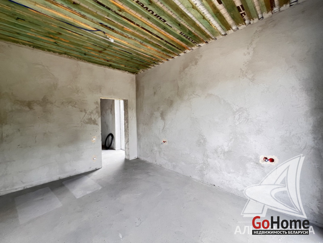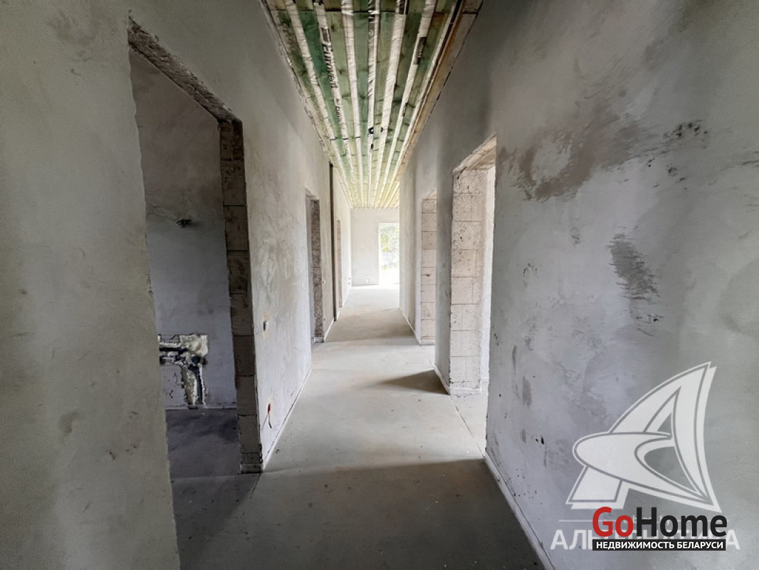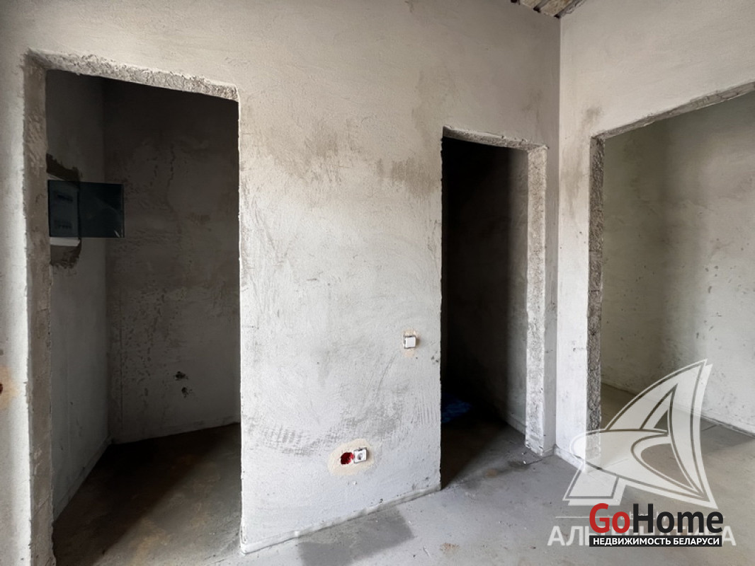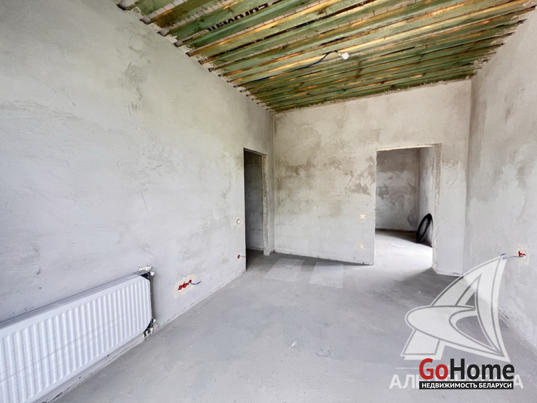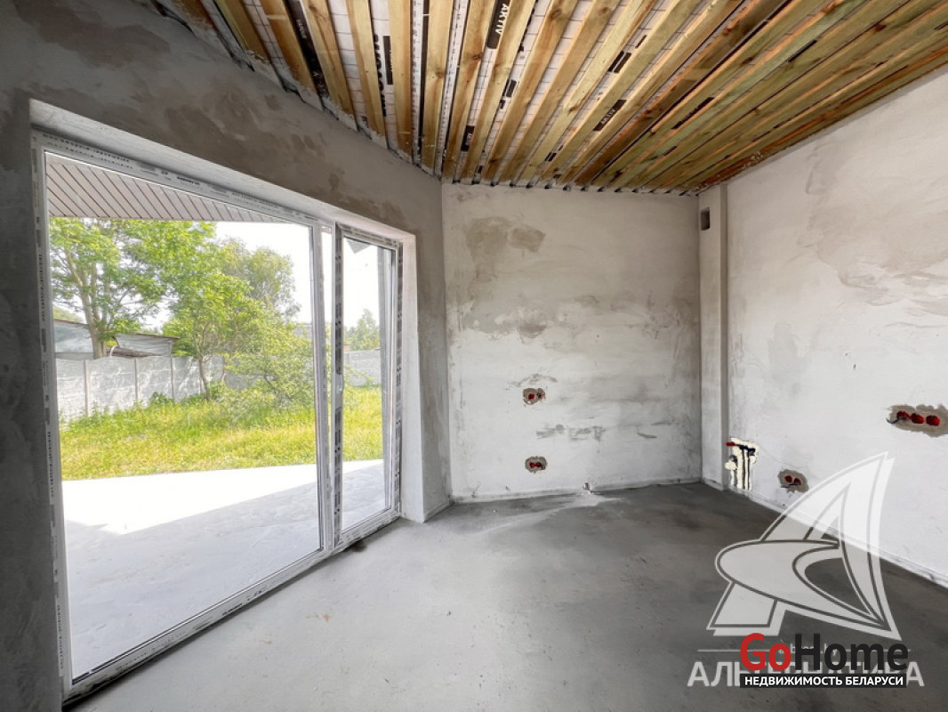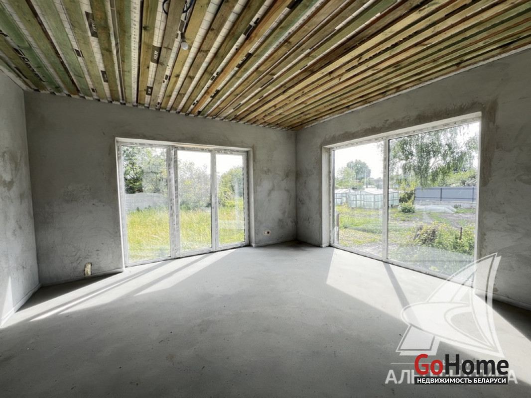 Жилой дом под чистовую отделку в Брестском р-не. 2025 г.п. 1 этаж. Общ.СНБ - 149,05 кв.м, общ.- 115,73 кв.м, жил.- 63,49 кв.м, кух.- 15,44 кв.м. 4 комнаты, высота потолка - 2,90 м.