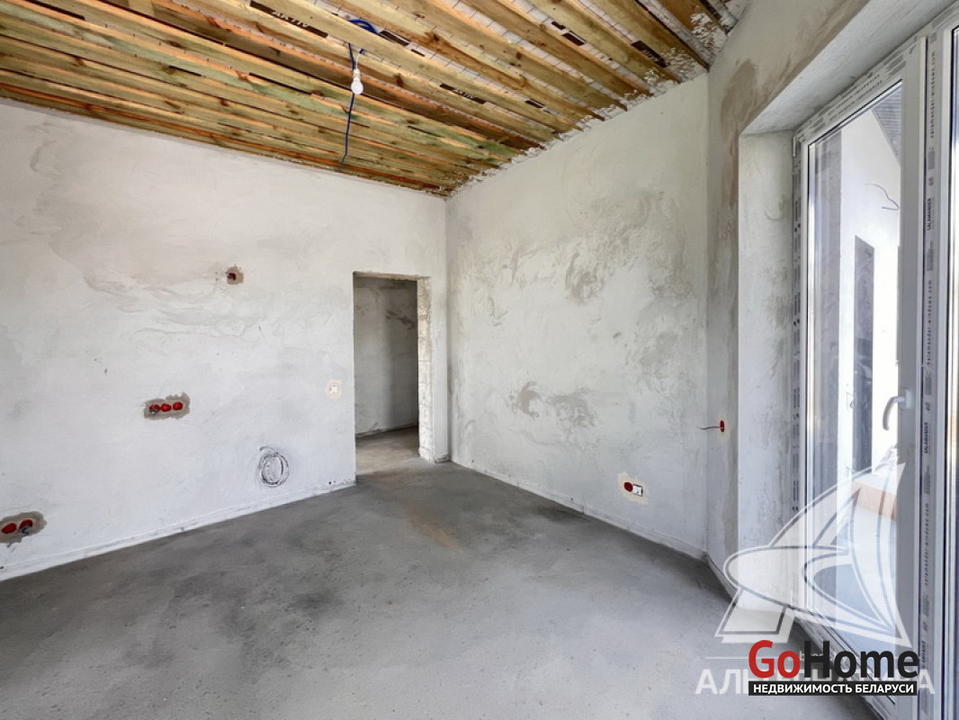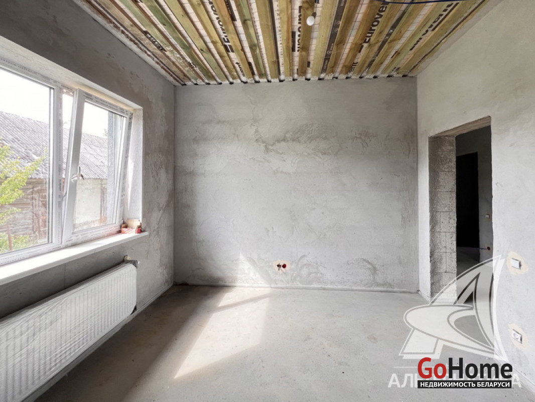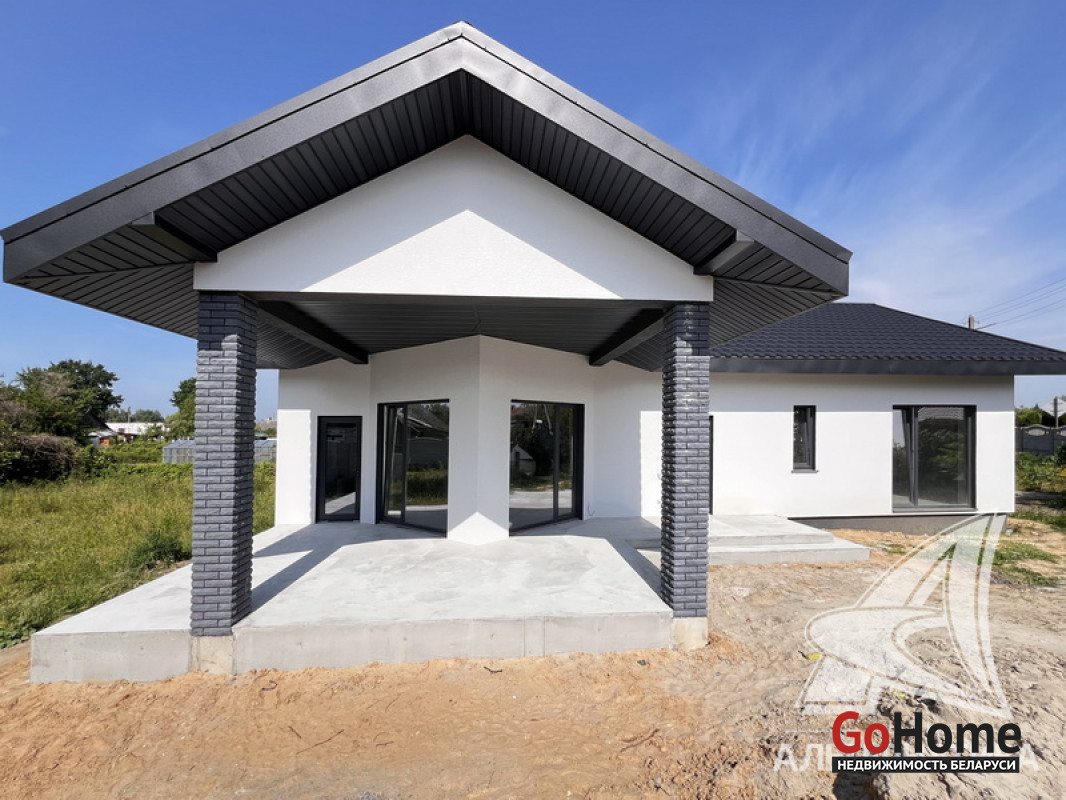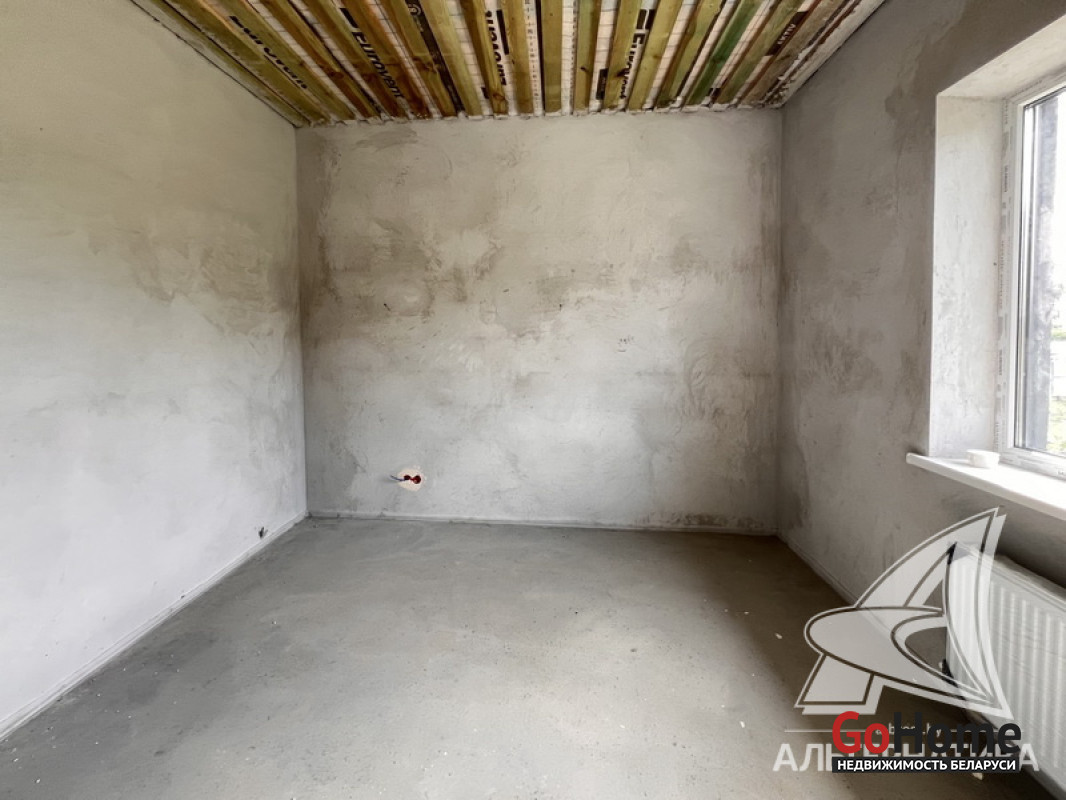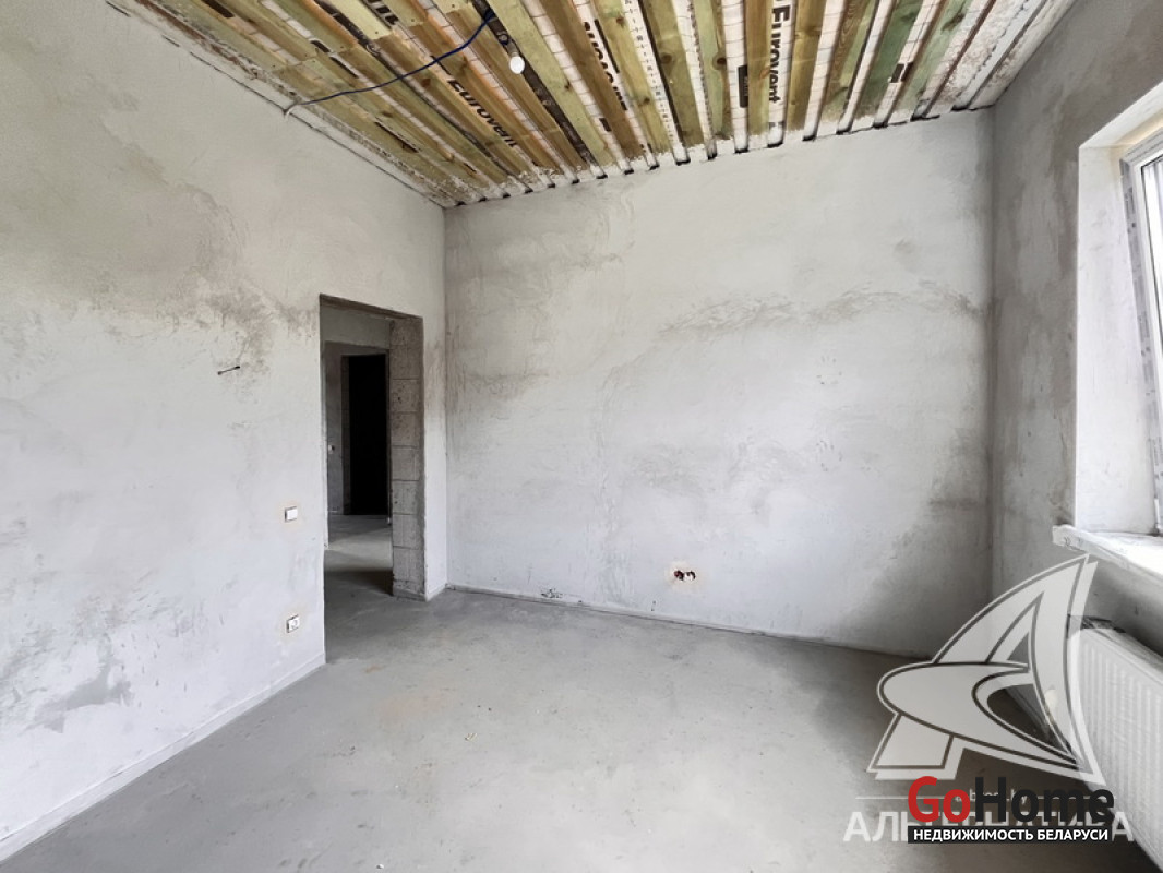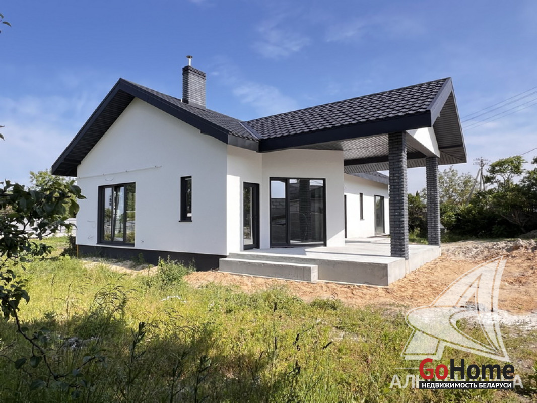Жилой дом под чистовую отделку в Брестском р-не. 2025 г.п. 1 этаж. Общ.СНБ - 149,05 кв.м, общ.- 115,73 кв.м, жил.- 63,49 кв.м, кух.- 15,44 кв.м. 4 комнаты, высота потолка - 2,90 м.