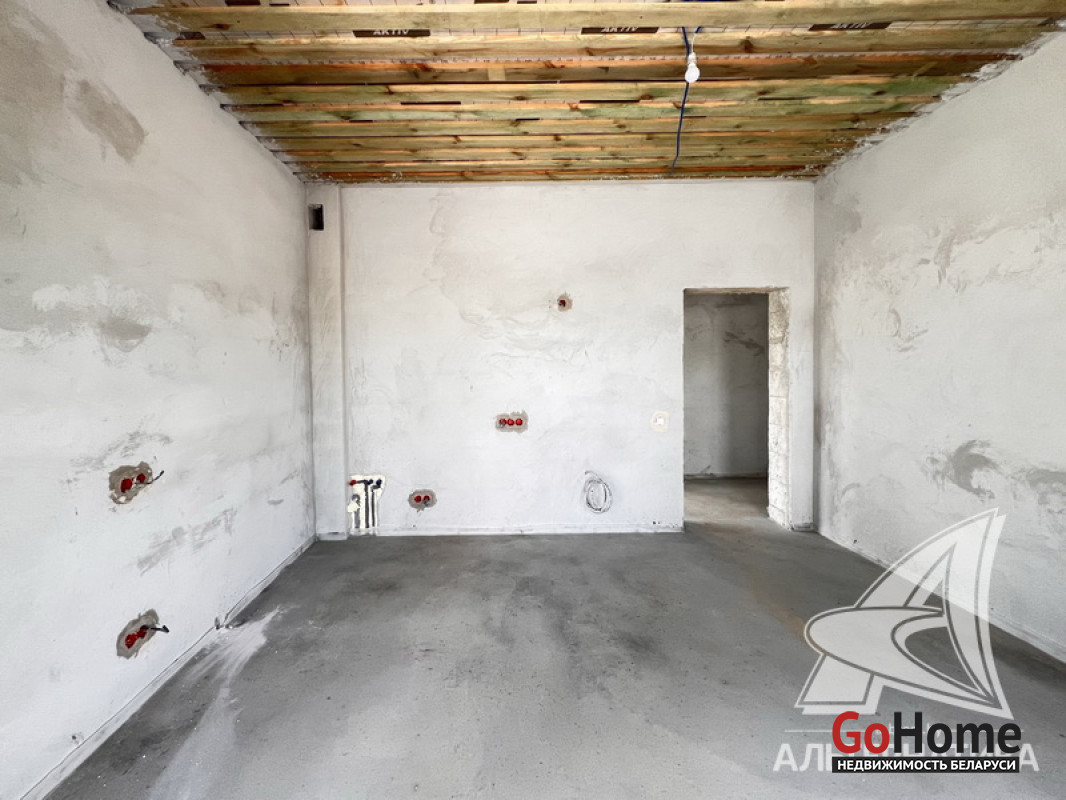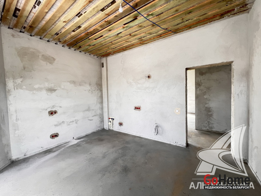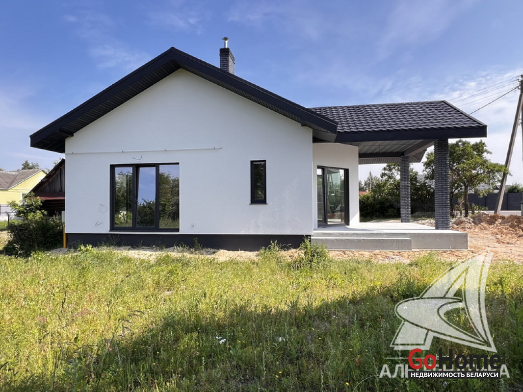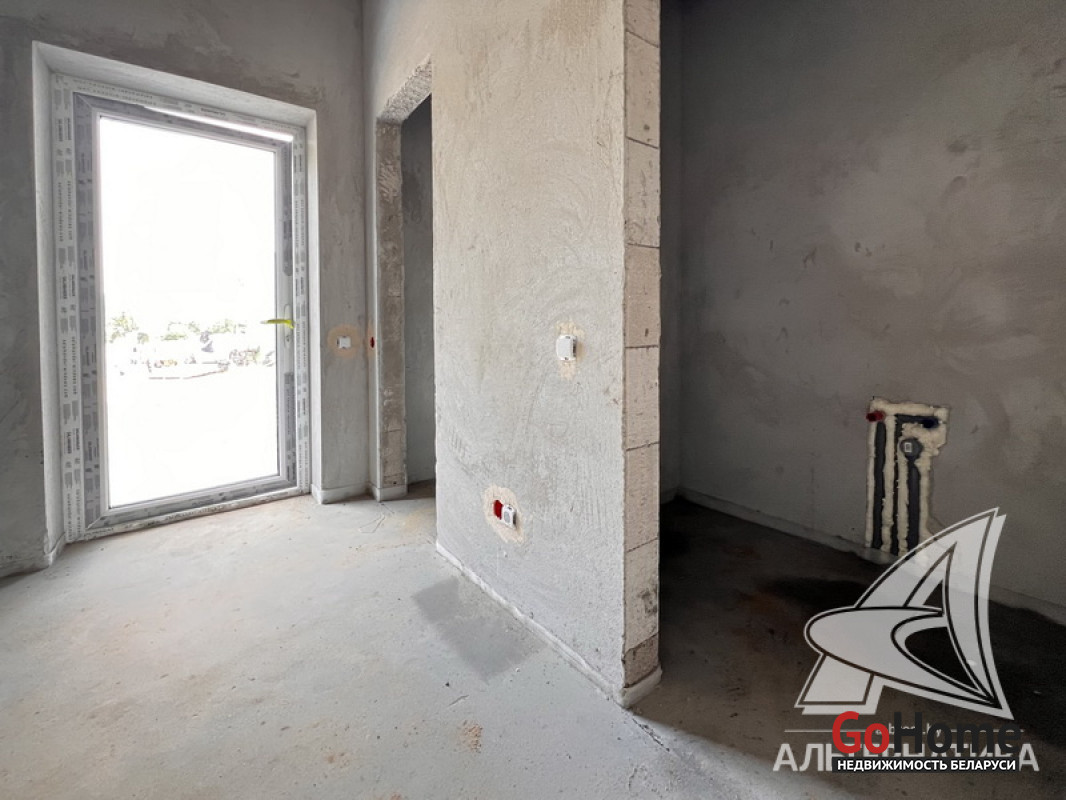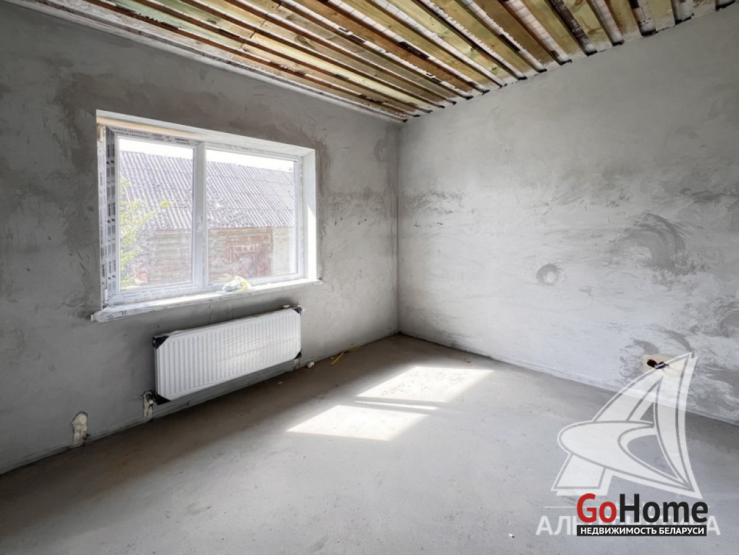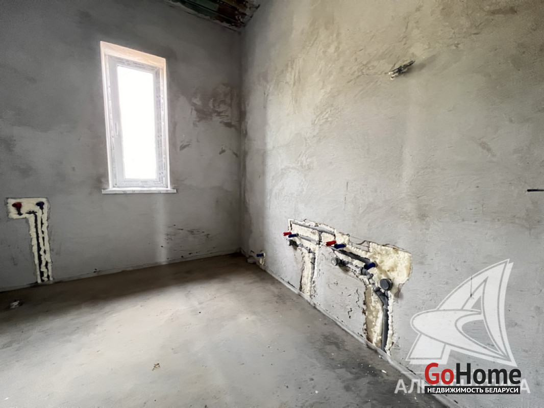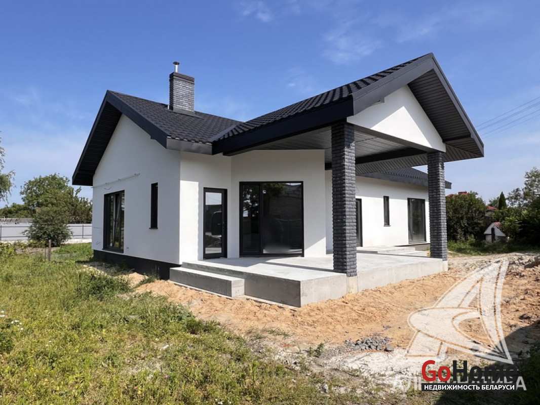Жилой дом под чистовую отделку в Брестском р-не. 2025 г.п. 1 этаж. Общ.СНБ - 149,05 кв.м, общ.- 115,73 кв.м, жил.- 63,49 кв.м, кух.- 15,44 кв.м. 4 комнаты, высота потолка - 2,90 м.