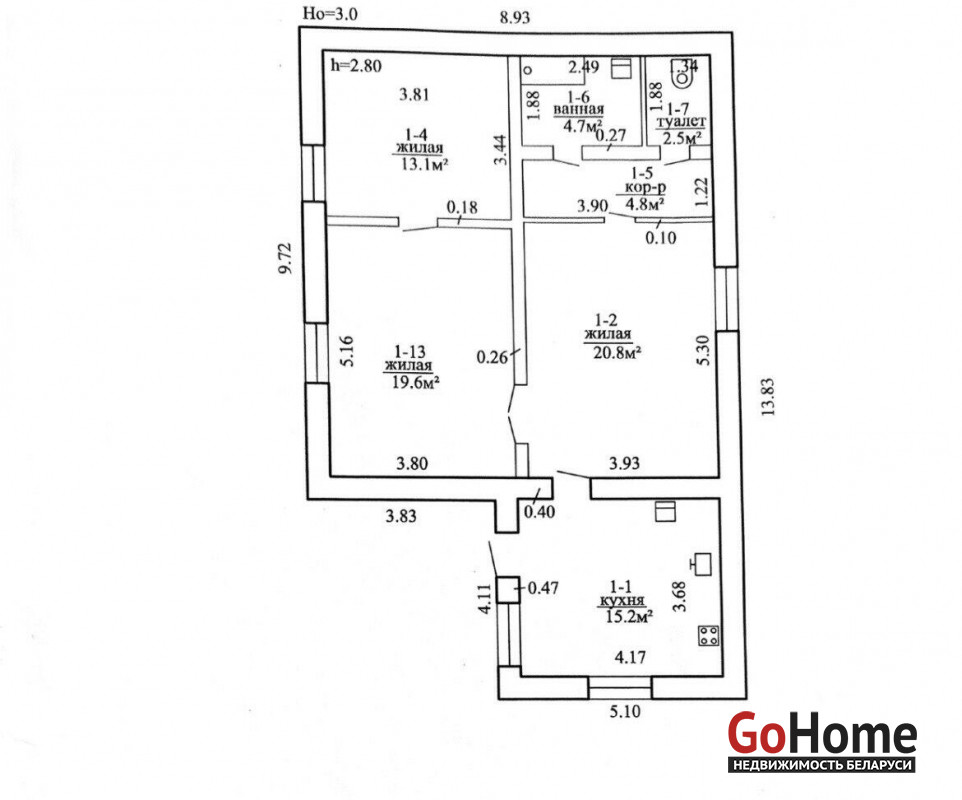 Продается жилой дом, расположенный в 15 минутах езды от города Минска, аг. Гатово, ул. Центральная, Пуховичское направление, в 9 км от МКАД, с участком 10 соток, форма собственности – частная. Дом полностью готов к проживанию. Газ рядом, по улице. Год постройки 2012. Общая площадь 80.7 кв.м. Крыша – ондулин. Стены - газосиликатные блоки, утеплены минватой толщиной 50 мм. Окна деревянные. В доме есть все необходимые коммуникации: электричество, вода, отопление, телефон и интернет:- канализация местная (кольца);- вода в доме центральная – холодная. Для нагрева воды используется бойлер на 100 литров;- отопление дома происходит от электрического котла (220В, льготный тариф);- интернет (оптика) от Белтелекома; Планировка дома: коридор (4.8 кв.м.), кухня (15.2 кв.м.), три жилых комнаты (общ. 53.6 кв.м.), ванная комната (4.7 кв.м.) и туалет (2.5 кв.м.). Высота потолков 2.80 метра. Участок 10 соток, прямоугольной формы, ровный и огорожен. Останова общественного транспорта всего в 7 минутах хотьбы от дома. Развитая инфраструктура (сады, школа, поликлиника, магазины и тд.). Дом: