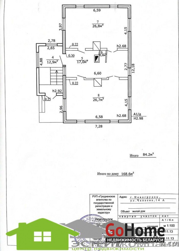 Продается незавершенный дом, по адресу г.Новогрудок,ул.Чапаева, д.14 А. Дом деревянный, обложен кирпичом, 2 этажа.