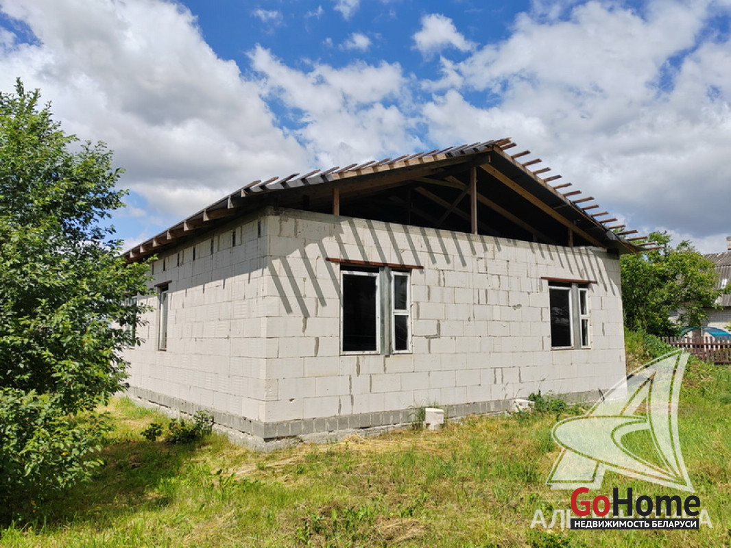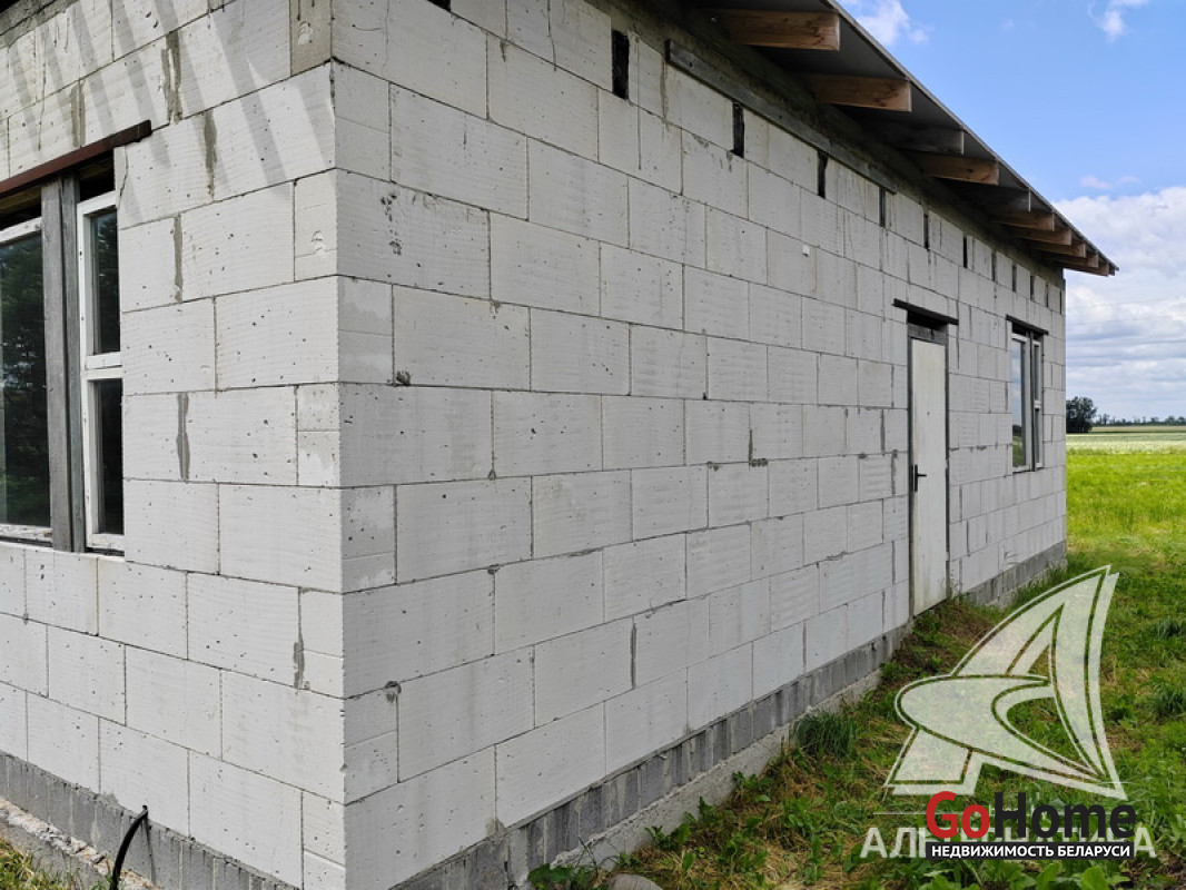 Коробка жилого дома в Брестском р-не. 1 этаж. Общ.СНБ - 71,6 кв.м, жил.- 42,63 кв.м, кух.- 14,18 кв.м. 3 комнаты.