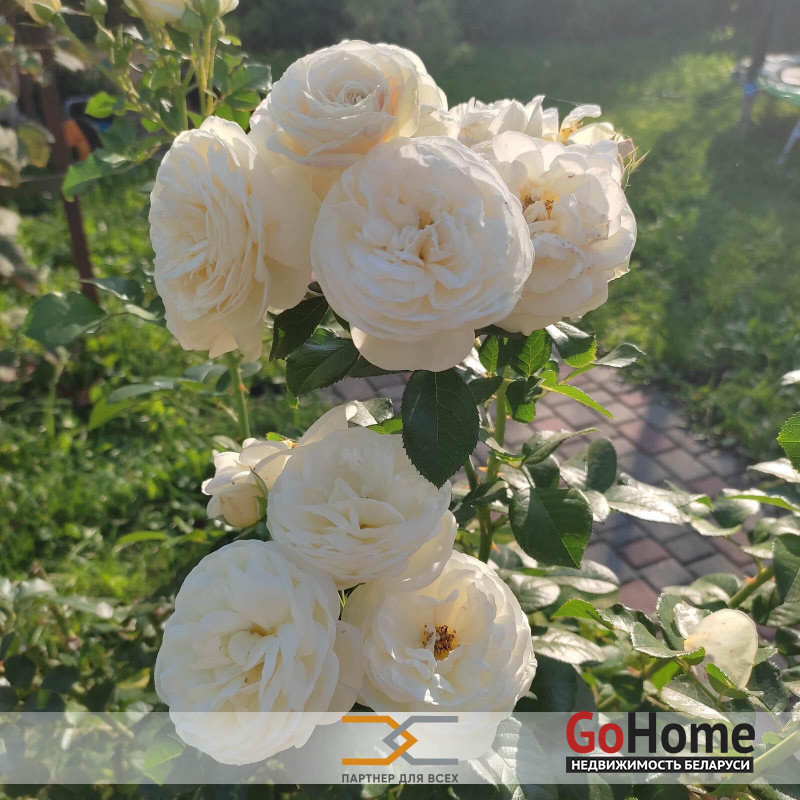 Посажен плодовый сад с ландшафтным дизайном. Присутствуют редкие сорта винограда и много элитных цветов: гортензии, английские, немецкие и французские розы, хвойные и декоративные кустарники с интересными топиарными формами.