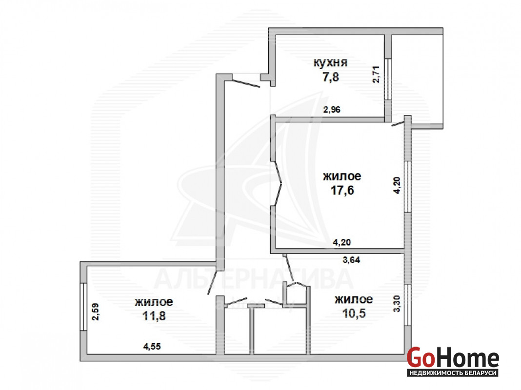 3-комнатная квартира, г. Брест, ул. Янки Купалы, 1993 г.п., 9 / 9 кирпич, 75,5 / 72,5 / 45,0 / 11,5, санузел раздельный, две лоджии застеклены, стеклопакеты, деревянные межкомнатные двери, входная дверь металлическая, по…