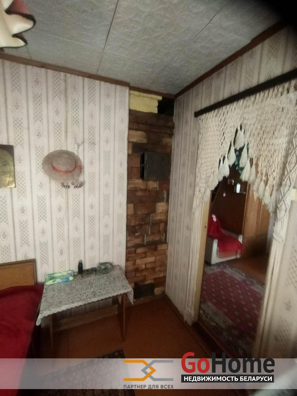 Участок – 6,31 соток. Дом кирпичный – 50,7 кв.м. На первом этаже кухня, кладовая, прихожая, две спальни. Стены – обои. Пол и потолок – дерево. Лестница на второй этаж. На втором этаже одна комната. Окна – дерево. Вода – свой колодец, плюс сезонная. Отопление – печное. Мебель остается.