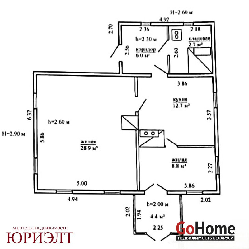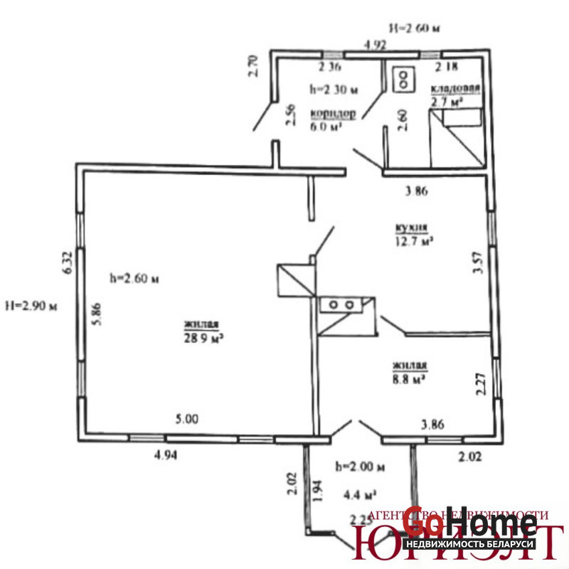Дом общей площадью по СНБ – 63.5 м2, общая жилая - 59.1 м2, жилая - 37.7 м2 , просторная кухня – 12,7 м2, погреб, кладовое помещение можно переоборудовать под с/у.