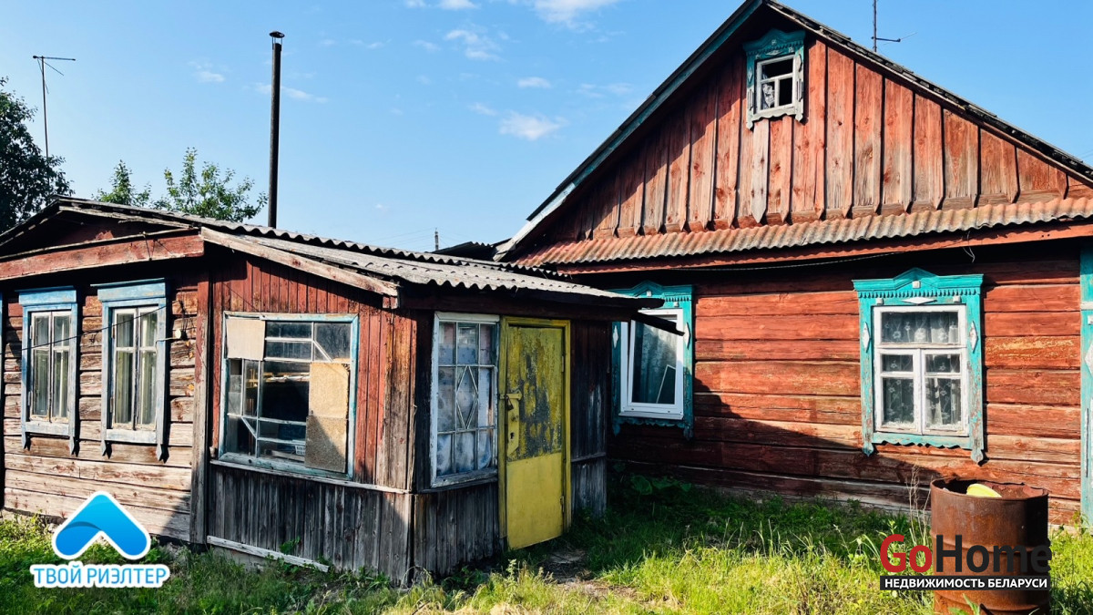 - Строительство: деревянный дом с шифером и деревянными и пластиковыми окнами.