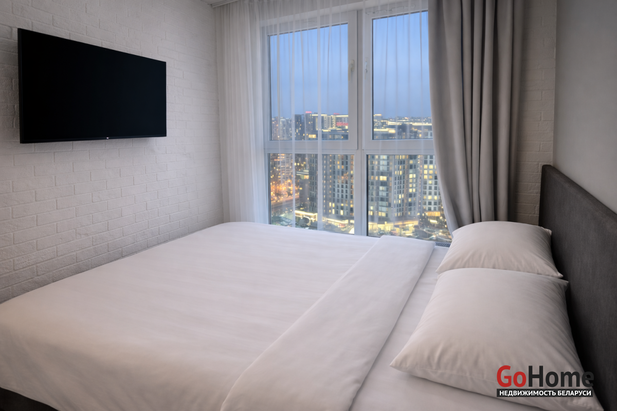 Предлагаем вашему вниманию новую двухкомнатную квартиру с КОНДИЦИОНЕРОМ и панорамным видом на город, расположенную в современном жилом комплексе Минск Мир.