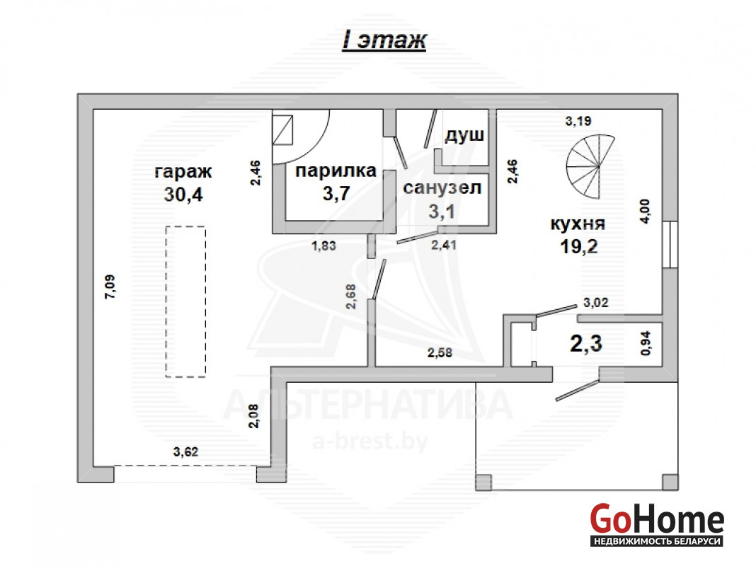 3-комнатная, 69.2/35.8/9.1 м2, (22.19 соток), 1 эт., 1962 г.