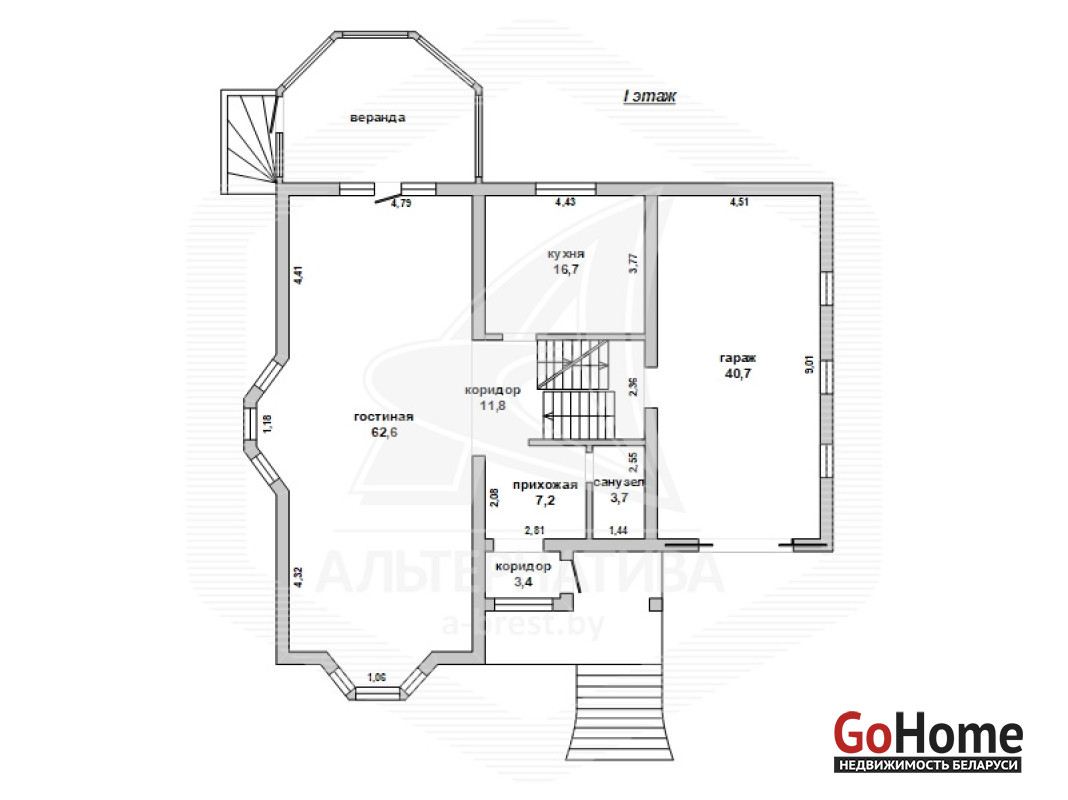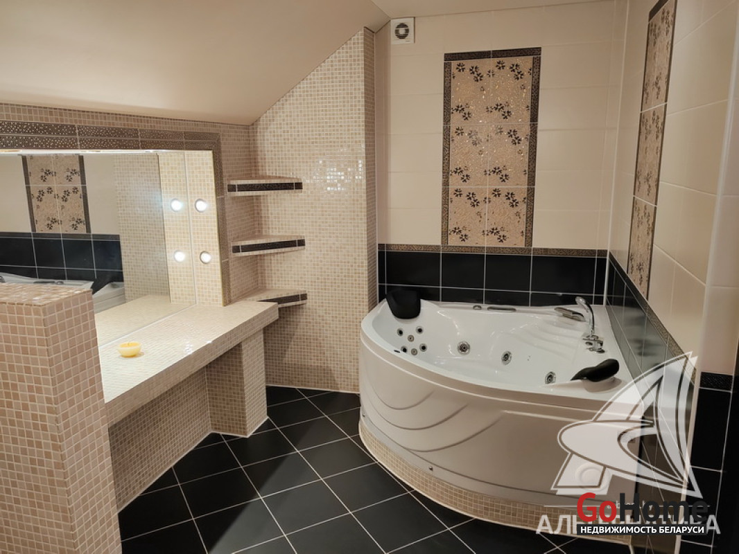 Жилой дом в г.Бресте. 2008 г.п. 1 этаж, мансарда, цокольный этаж. Общ.СНБ - 379,5 кв.м, общ.- 240,8 кв.м, жил.- 149,7 кв.м, кух.- 16,7 кв.м. 5 комнат, высота потолка - 2,61 м.