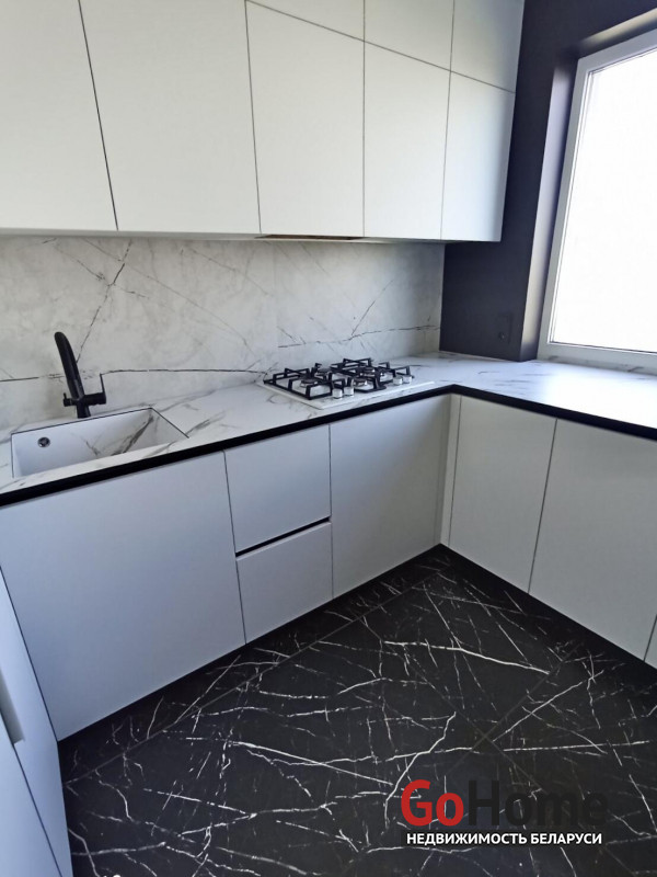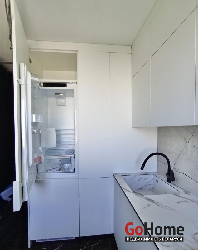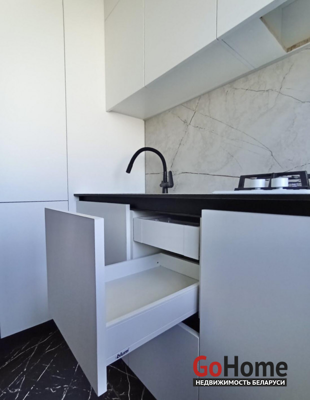 Кухня оборудована функциональным и вместительным гарнитуром с системой Push-to-open и тремя ярусами, а также доводчиками Blum. Вся бытовая техника – новая и включает жарочный шкаф, СВЧ-печь, посудомоечную машину и холодильник Electrolux. В санузле, ванной, кухне, кладовой и прихожей на полу уложен высокопрочный керамогранит с системой «теплый пол», а ванна выполнена из искусственного камня. Установлен электрический проточный моментальный водонагреватель, смеситель в ванной с гигиеническим душем черного карбона фирмы Gappo, а также система защиты от протечек Neotun с Wi-Fi.