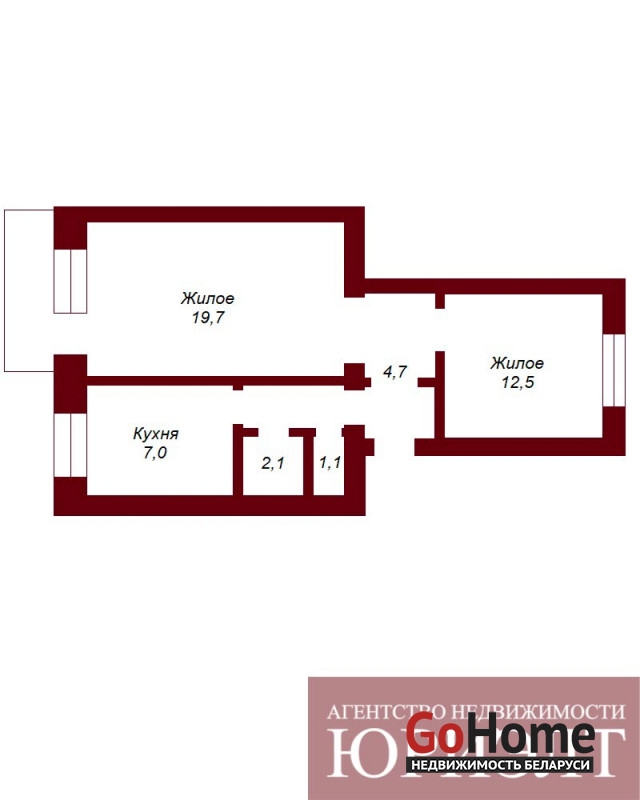 • Комнаты: 20 м² и 12,5 м²