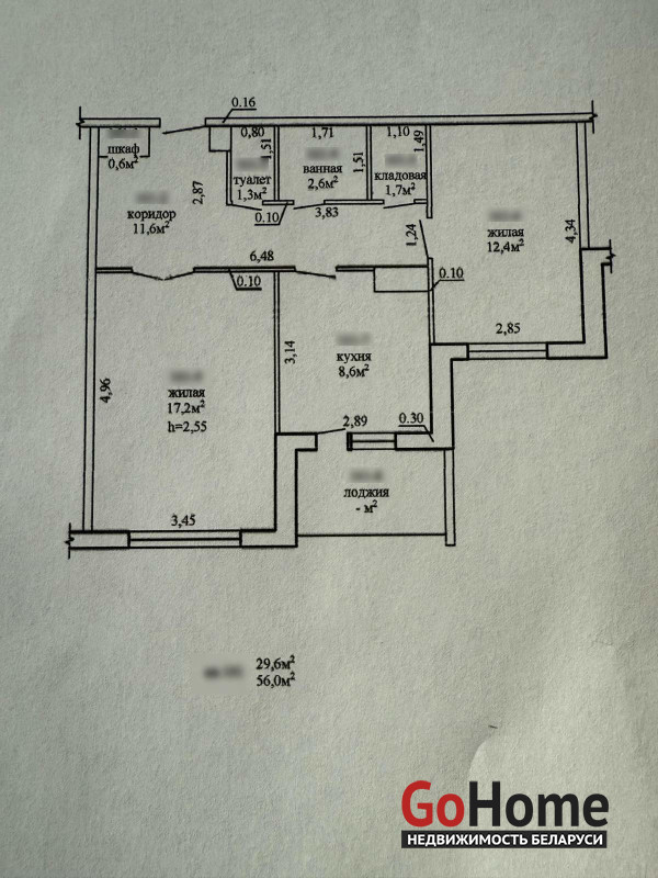 Квартира расположена на пятом этаже панельного дома, построенного в 1990 году. Общая площадь составляет 56,0 м², из которых жилая площадь – 32,0 м², а просторная кухня – 9 м².