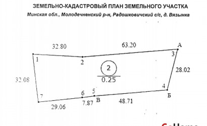 Земельный участок площадью 25 соток предоставлен в частную собственность. На участке есть свой колодец, сарай, навес, плодоносящий сад (яблони, вишни, сливы).