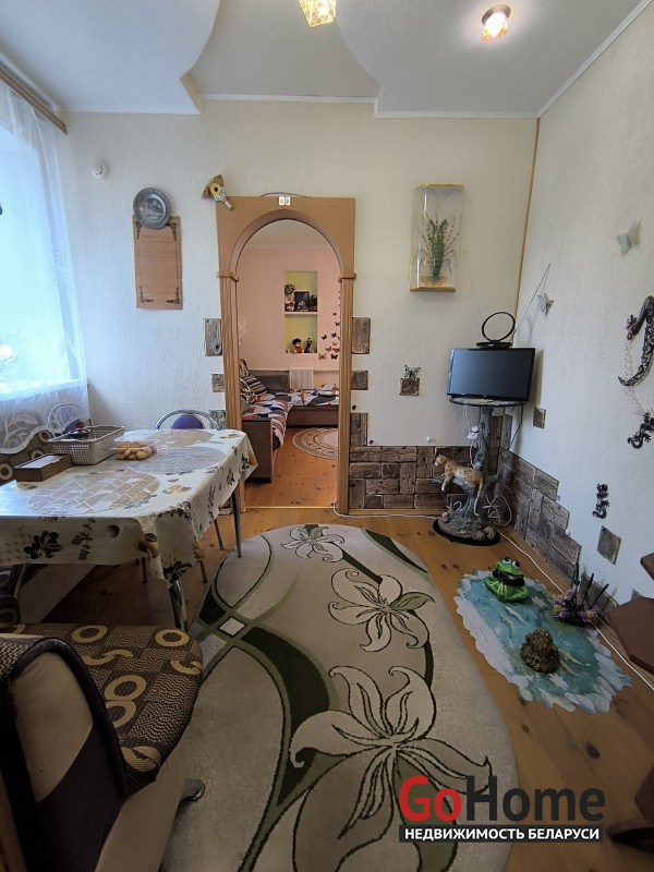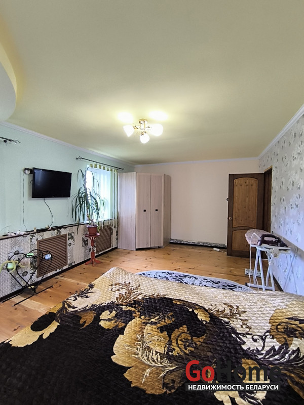 Дом кирпичный 1972 года постройки, пристройка 2008 года. Крыша шифер, окна ПВХ, пол деревянный, в кухне и санузеле плитка керамическая. В доме 5 комнат, кухня 14 м², санузел в доме раздельный. Электроснабжение есть, отопление газовое (котёл юнкерс), водоснабжение- скважина новая (более 20 м глубина) + насосная станция, канализация местная (выгребная яма, кольца ж/б).