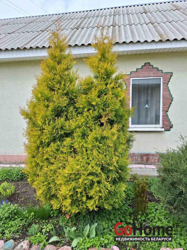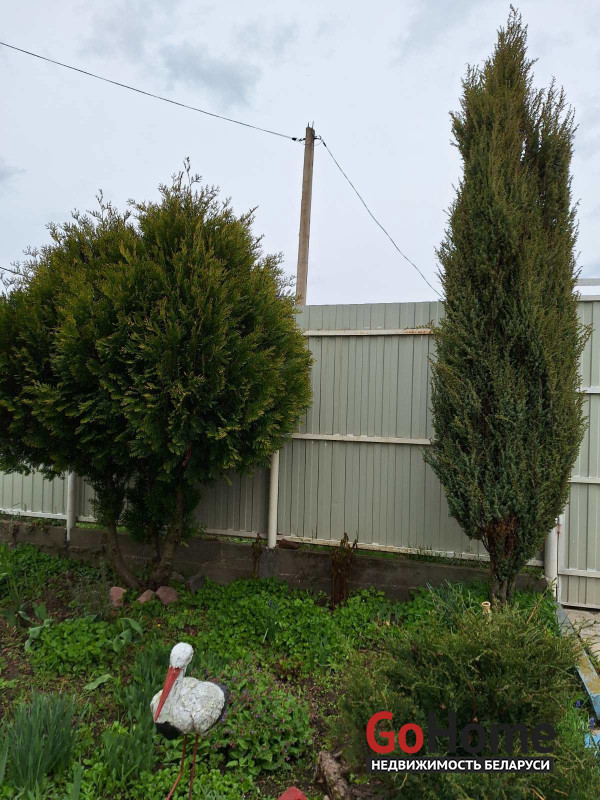 Туи, можжевельник казацкий, 4 яблони ( летняя 1, зимние 2, колоновидная 1), 2 вишни, 3 сливы (1 персиковая молодая, 2 жёлтые), 5 рядов малины, крыжовник 4 куста, смородина 5 кустов, айва, клубника, розы, пионы, хоста и другие.