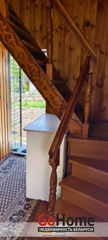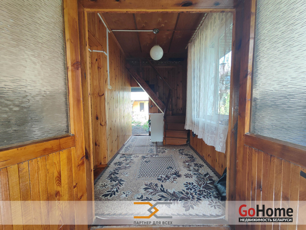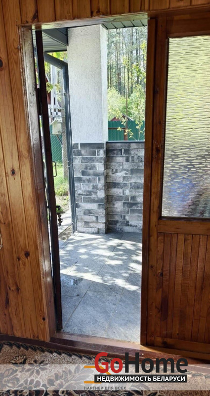 На веранде стены из вагонки, потолок декоративная фанера. Два входа-выхода из дома. Также лестница на второй мансардный этаж.