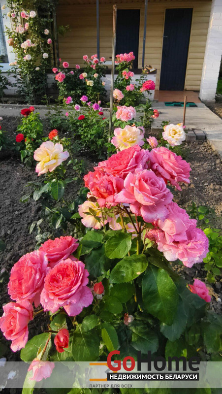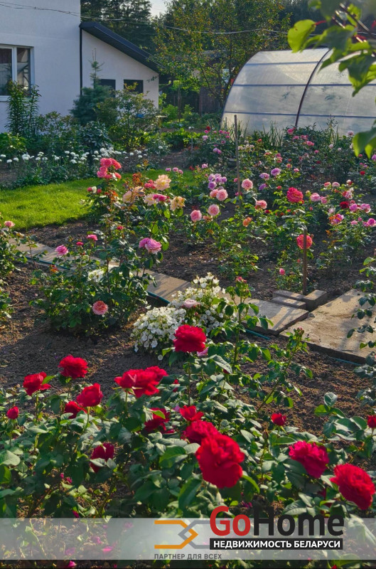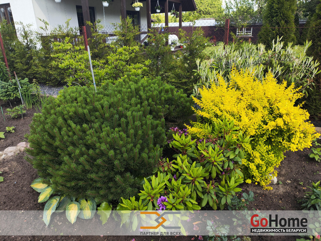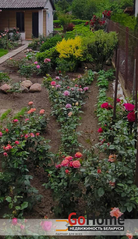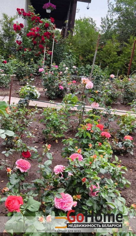 На участке разбит розарий, ландшафтный дизайн. Растет много различных многолетних декоративных кустарников и растений. Кусты и плодовые деревья в наличии.