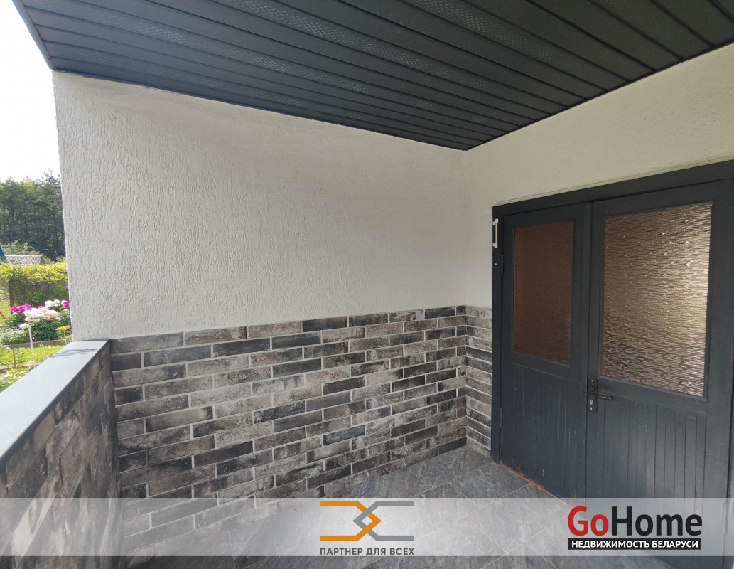 Дом деревянный. Обложен кирпичом. Оштукатурен и покрашен. Крыша металлочерепица Budmat Ferrara. Окна ПВХ, двухкамерные.