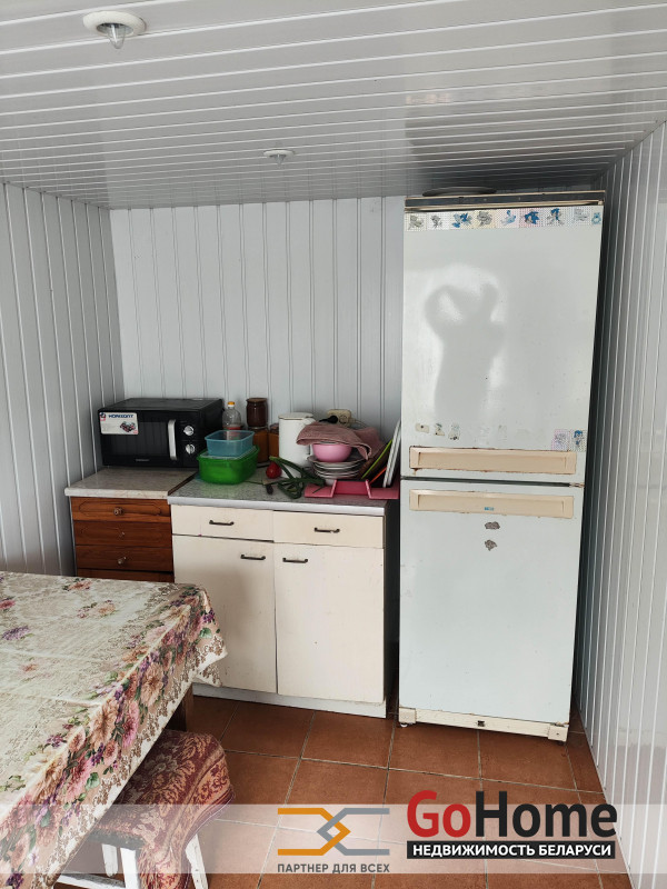 Хозблок из кирпича. Отделан сайдингом. Внутри плитка и пластиковые панели. Кухня, душ с бойлером Ariston, обустроенный туалет.