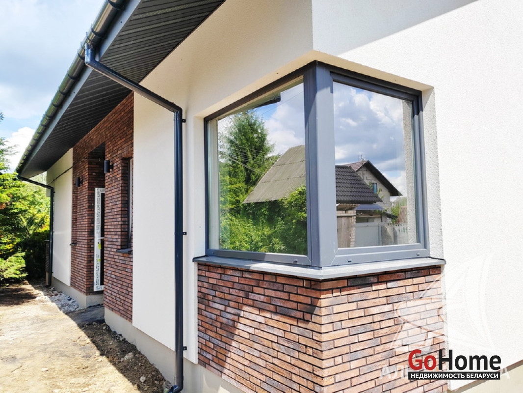 Стены: материал - газосиликатный блок; утепление - пенополистирол (пенопласт); отделка фасада - оштукатурен, окрашен. Кровля: металлочерепица. Фундамент: ленточный монолитный; материал - бетон; подушка - бетонная.