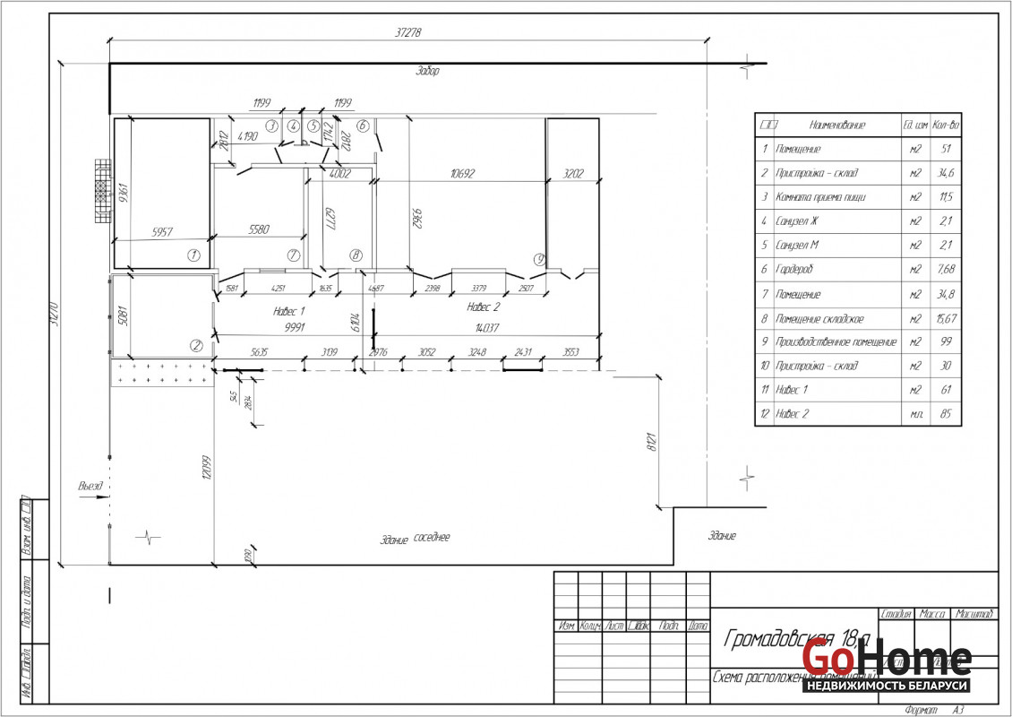 Общая площадь = капитальные помещения с отоплением- 223 м2, складские помещения - 65 м2, пристройка-навес с бетонным полом - 146 м2.