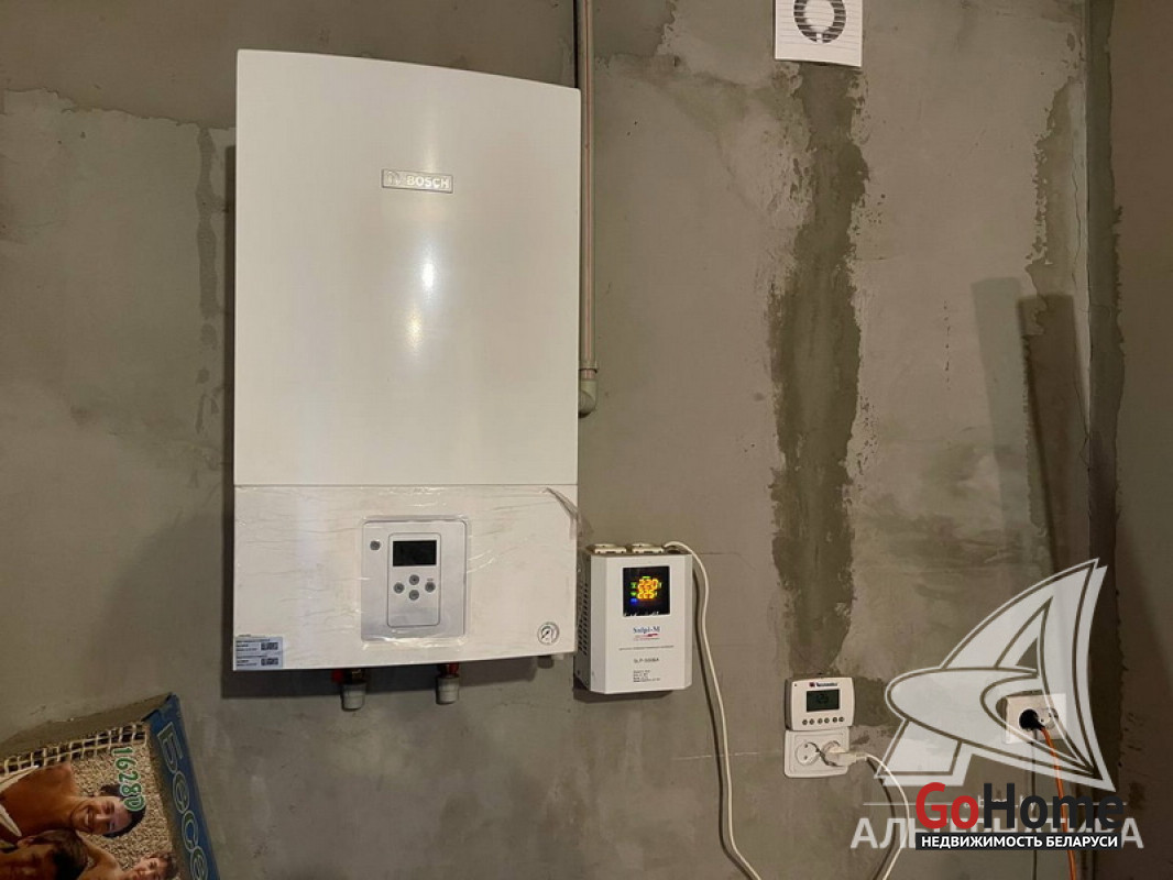 Коммуникации: отопление - газовый котел и печь, газ - централизованный (в доме), водоснабжение - скважина и гидрофор, электричество - централизованное, канализация - автономная.