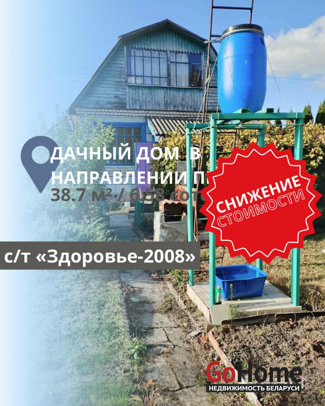 Продается уютный садовый домик мансардного типа в садовом товариществе "Здоровье-2008", расположенном в направлении Прилуки. Построенный в 1996 году, дом находится на земельном участке площадью 6,58 соток правильной прямоугольной формы, огороженном с одной стороны сеткой-рабицей, а с другой — железобетонным забором. Стены дома выполнены из блоков ГСМ, фундамент — ленточный железобетонный, перекрытия деревянные, крыша покрыта волновым шифером. Общая площадь домика составляет 38,7 кв.м и включает три комнаты, кухню, балкон и холодную пристройку. Внутренняя отделка стен выполнена из деревянной вагонки.
