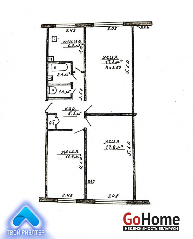 - стандартная планировка квартиры площадью 61,2 кв.м;