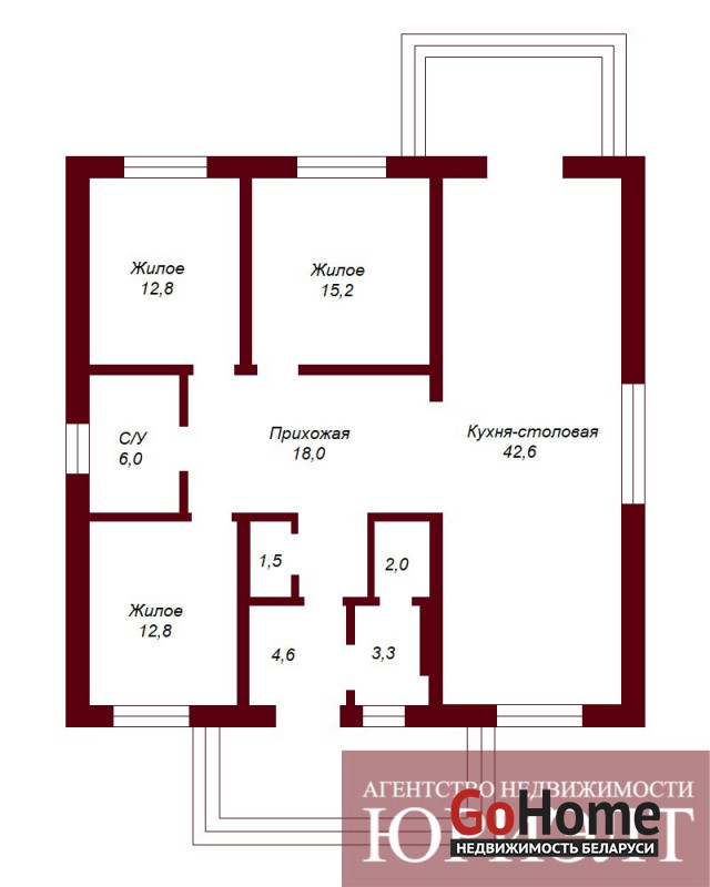 Дом, построен в 2023 году, общей площадью 120 кв.м. В доме расположены кухня-гостиная 43 кв.м., две спальни по 13 кв.м., третья 15 кв.м., два санузла и котельная.
