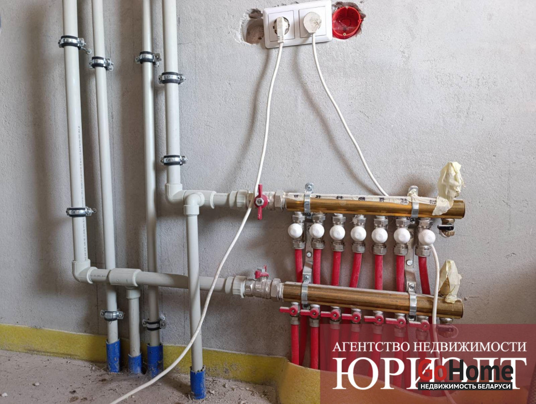 Коммуникации: электричество - есть, разведена сантехника, канализация (септик), а также обеспечен доступ к центральному водопроводу и скважине, в доме разведена система теплых полов, потолок подшит и утеплен, что создаст комфортные условия для дальнейшей отделки по вашему вкусу.
