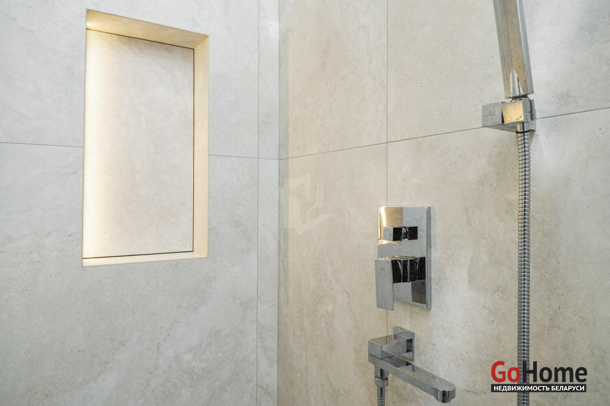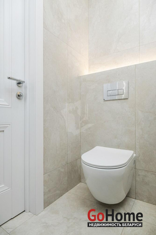 В квартире выполнен евроремонт с применением высококачественных отделочных материалов: идеально ровные стены с флезилиновыми обоями под покраску; на полу – ламинат высокого класса прочности с деревянным плинтусом; санузел облицован испанской плиткой и оснащен премиальной немецкой сантехникой.