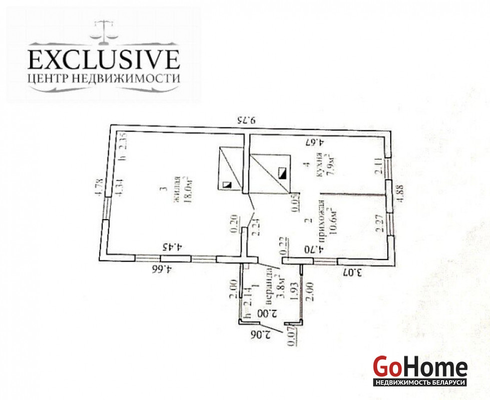По плану в техпаспорте в доме 1 комната, кухня, прихожая и веранда. В настоящее время большая комната разделена перегородкой на 2 комнаты, а также прихожая используется в качестве комнаты.