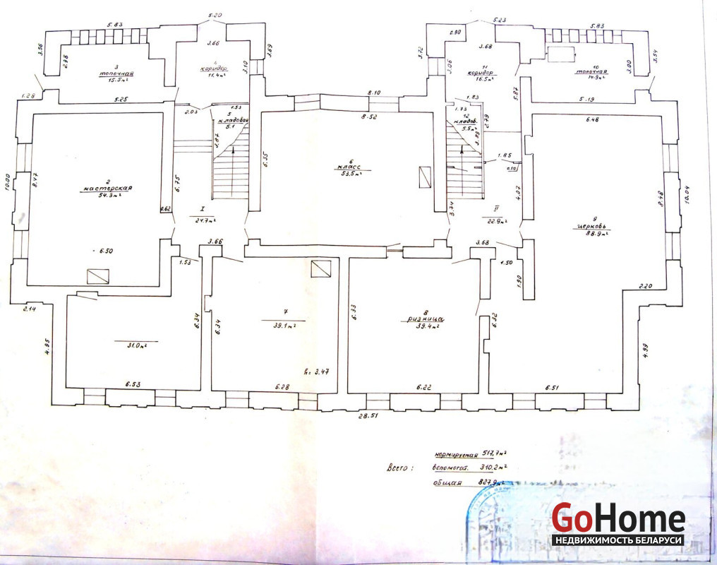Общая площадь здания 827, 9 м.кв.