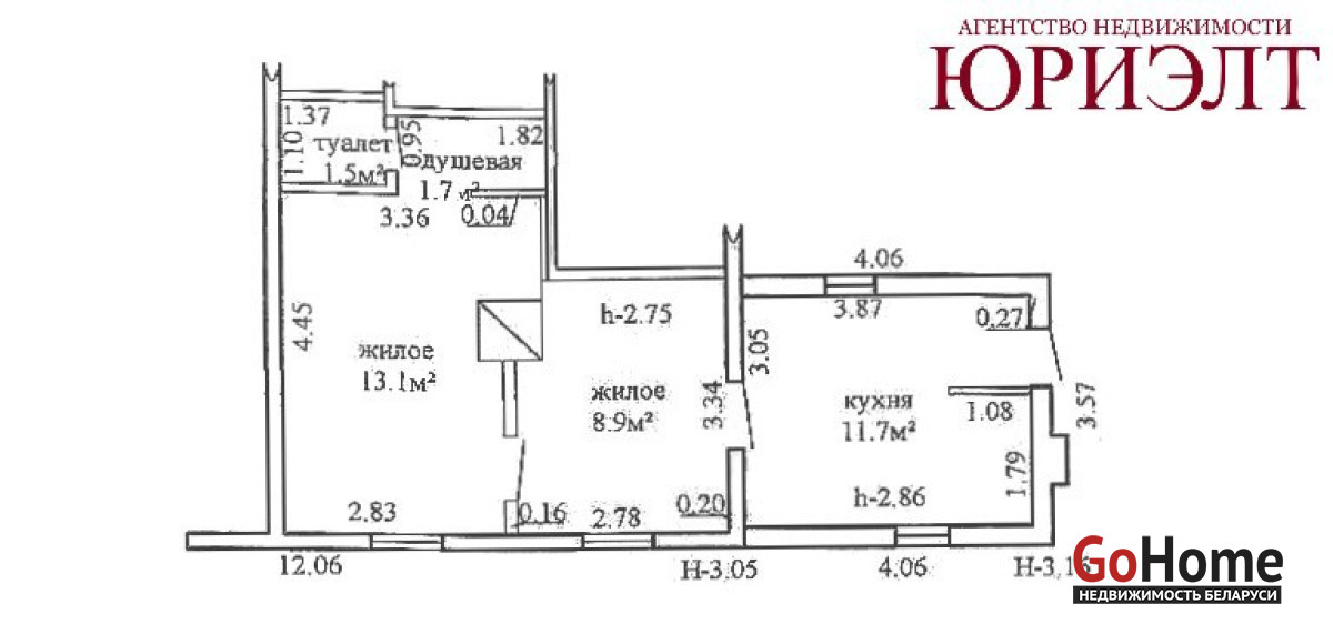 Общая площадь по СНБ – 36.9 м², жилая – 22 м², кухня - 11.7 м².
