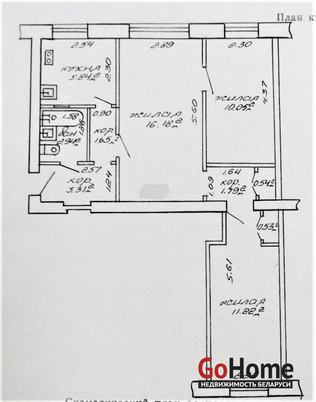 3-комнатная квартира на первом этаже 4-этажного кирпичного дома по адресу: ул. Пушкина, 3. Общая площадь квартиры — 54,05 м.кв.
