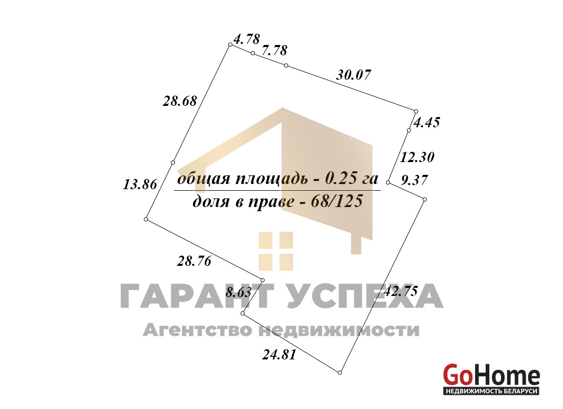 Земельный участок площадью 25 соток (13,6 соток) находится в общей долевой собственности. Форма собственности – частная.