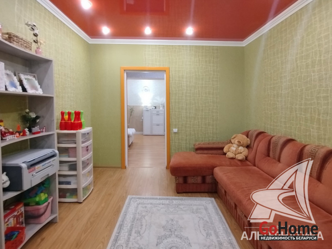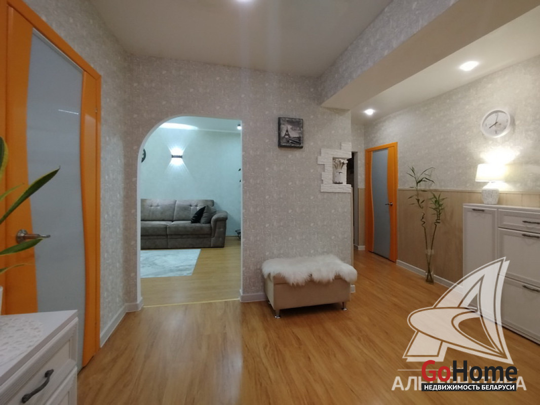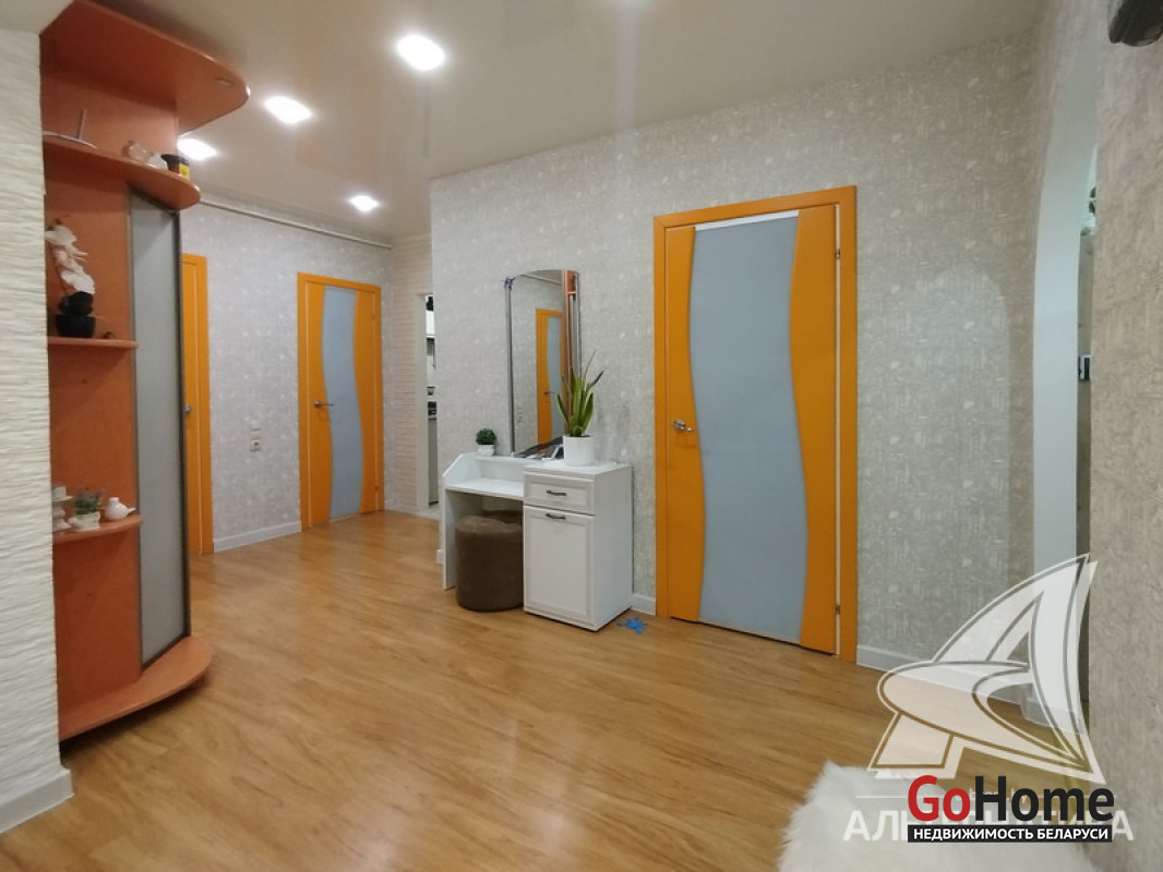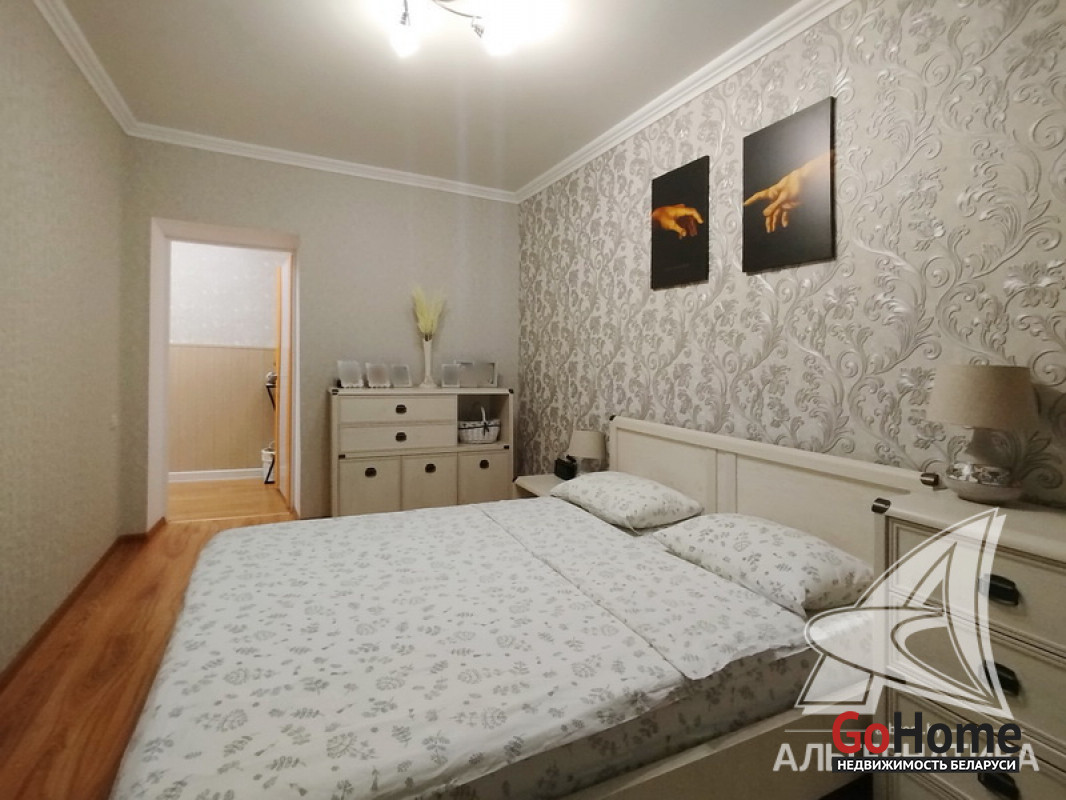 3-комнатная квартира, г. Кобрин, ул. Дзержинского, 1999 г.п., 1 / 5 кирпич, 81,3 / 77,7 / 44,2 / 9,3, санузел раздельный, две лоджии застеклены, подвал, однокамерные стеклопакеты, межкомнатные двери - массив и пластик, входная дверь металлическая, потолки (2,67 м) - натяжные (глянец - в одной комнате) и натяжные (сатин - в спальне, в зале), полы (положены на паркетную доску) - ламинат, стены оклеены обоями, в санузле современная плитка, заменена сантехника, заменен полотенцесушитель, заменены сантехнические трубы (пластик), душевая кабина, проведена новая электропроводка, установлены новые радиаторы, кондиционер, новый электросчетчик, телефон, домофон. Мебель по договоренности. Квартира с хорошим ремонтом. Квартира расположена на две стороны. Все окна выходят во двор. Чистый подъезд. Тамбур на две квартиры. Дом расположен в глубине двора. Во дворе игровая детская площадка, парковка для автомобилей. Лот - 251336