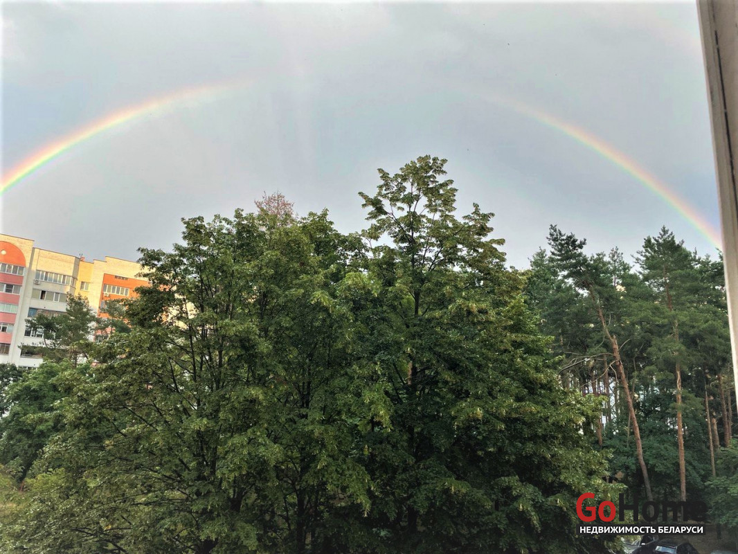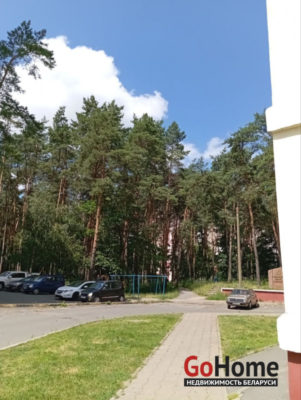Практически все окна выходят в сосновый сквер, окно спальни на другую сторону, также в зеленый двор.