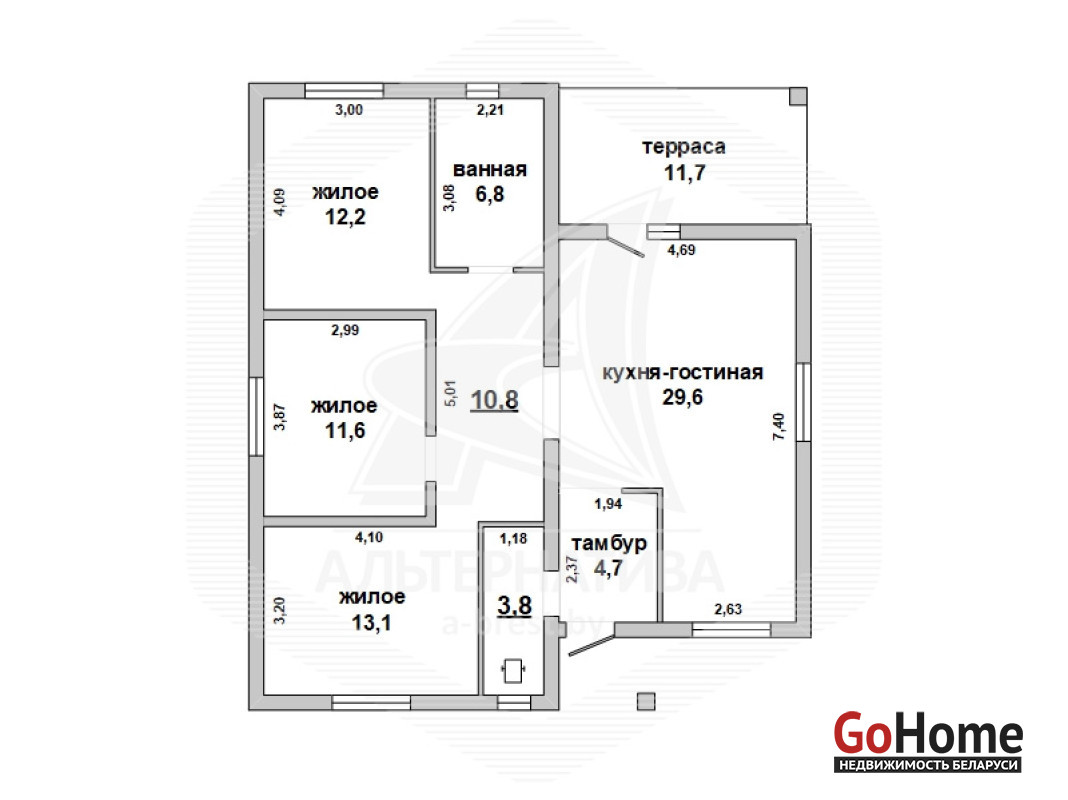 Дачный дом жилого типа в Брестском р-не. 2025 г.п. 1 этаж. Общ.СНБ - 96,1 кв.м, общ.- 96,1 кв.м, 4 комнаты.
