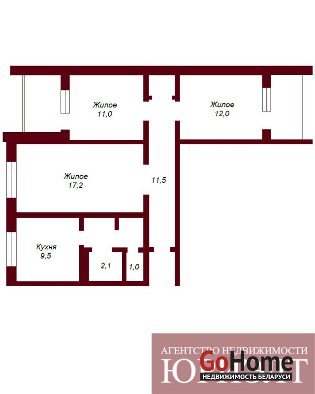 Общая площадь квартиры 67 кв.м., жилая - 40 кв.м., кухня - 9,5 кв.м.