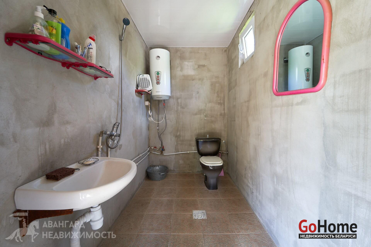 Деревянный дом 1999 года постройки, общей площадью 30,2 м2, жилая комната 18,9м2. Крыша из ондулина. Перекрытие - деревянные балки. Также установлены новые пластиковые стеклопакеты, что даёт дому дополнительную тепло и звуко изоляцию. Внутри пол и стены – деревянная доска. Канализация местная. Вода сезонная введена в дом, можно сделать скважину. На придомовой территории расположено отдельно стоящие строение в виде ванной комнаты с удобствами. Просторная комната дома укомплектована мебелью и готовы к комфортному проживанию в летнее время. Также организована кухня площадью 11.3м2.